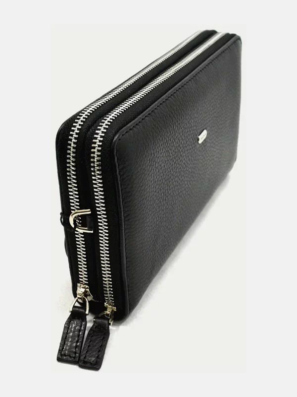 Шкіярний клатч чорного кольору на 2 автономних відділення