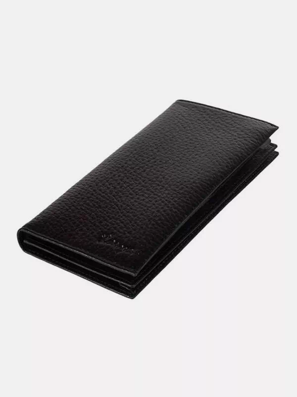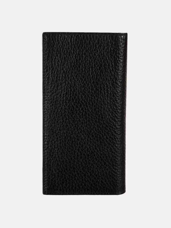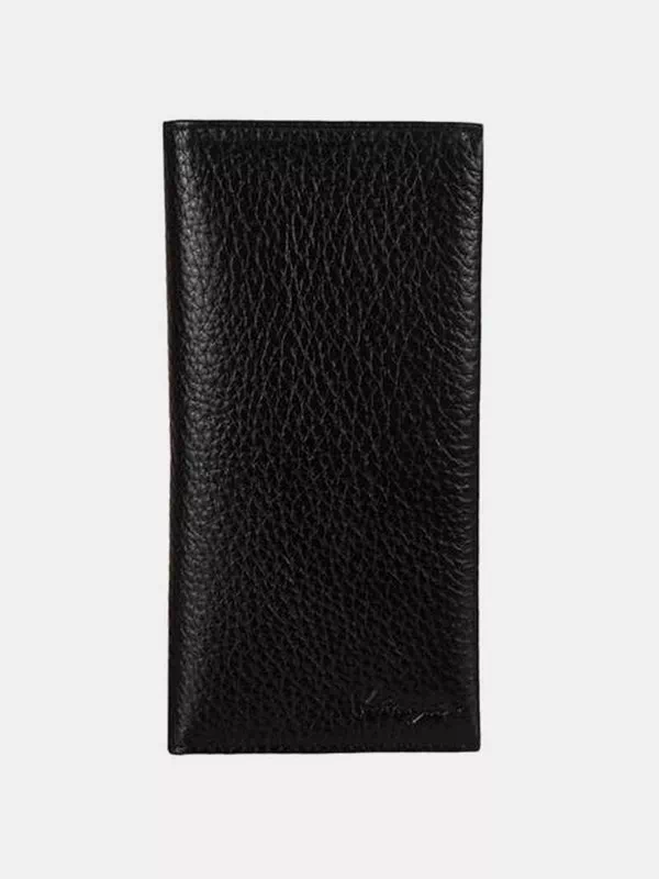 Вертикальний гаманець з чорної зернистої натуральної шкіри