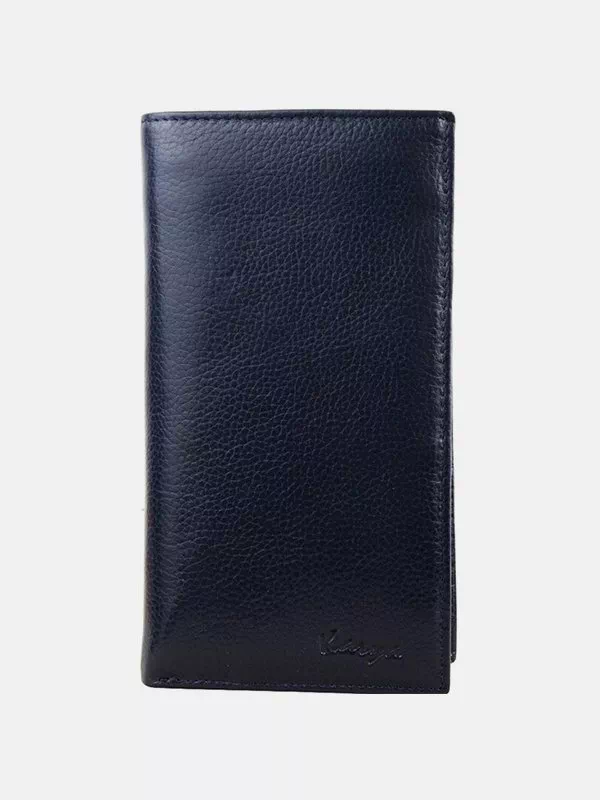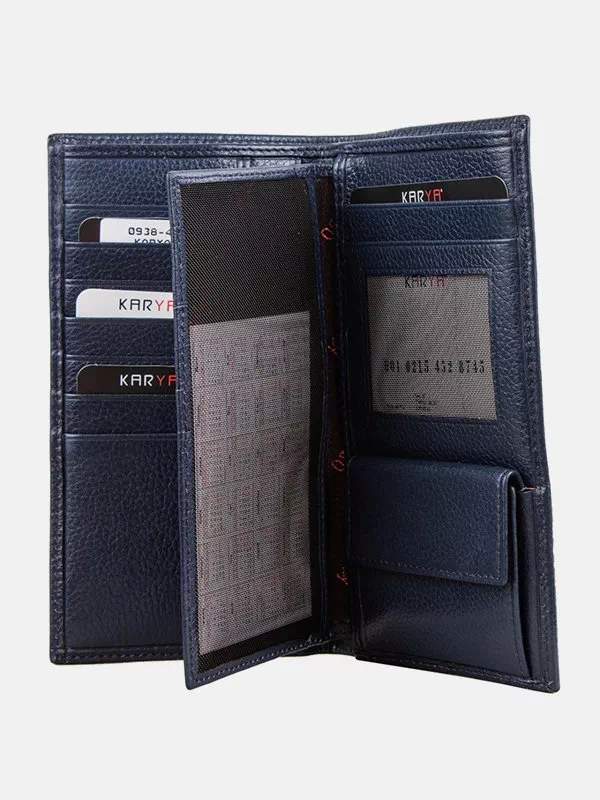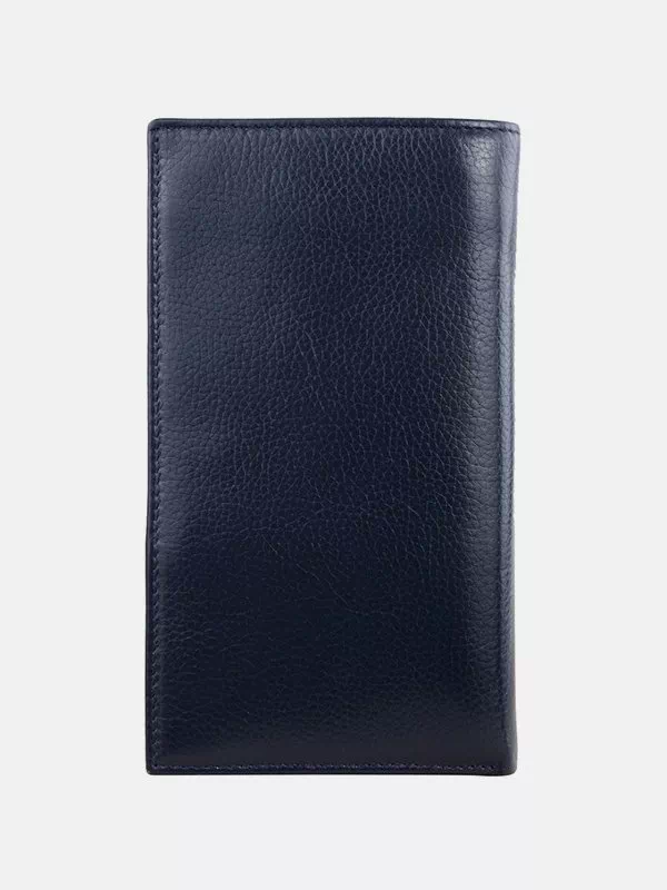 Синій вертикальний гаманець з зернистої натуральної шкіри