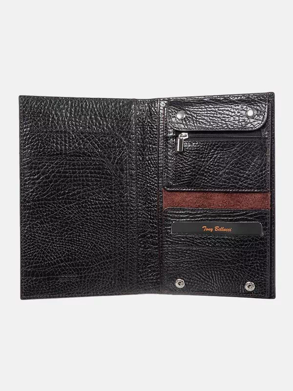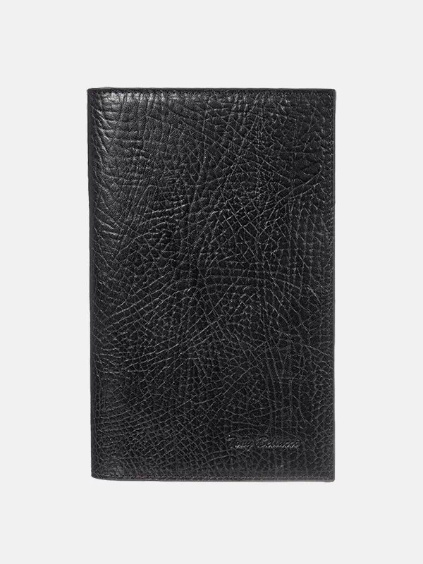 Вертикальний гаманець з фактурної чорної натуральної шкіри