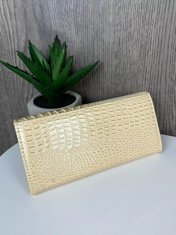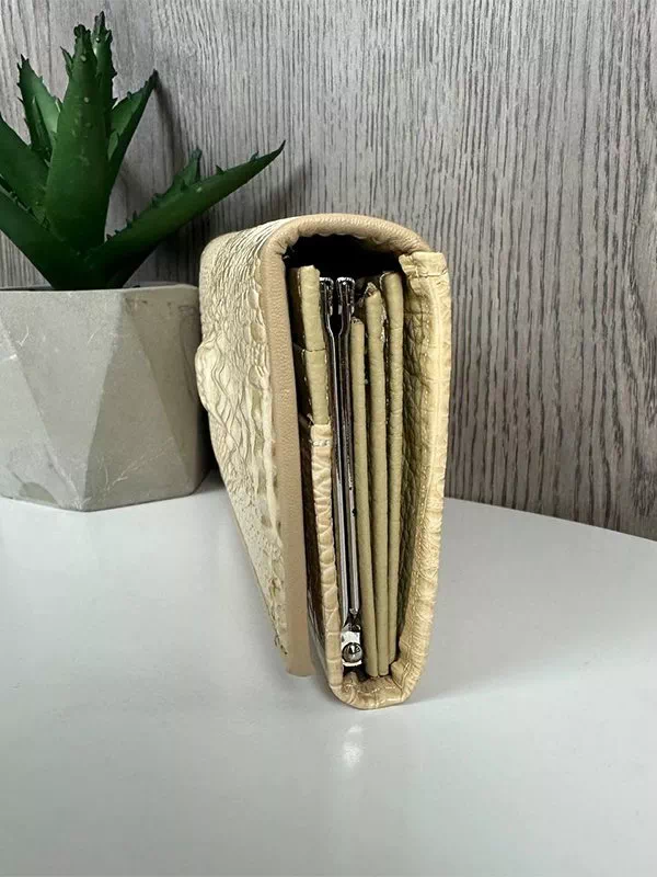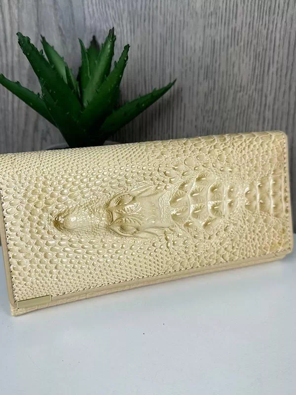 Жіночий гаманець B-119 – розумний вибір для використання з будь-яким стилем. Виготовлений з фактурної натуральної шкіри «під крокодила» вершкового відтінку. Аксесуар невибагливий за доглядом, має акуратний зовнішній вигляд, якісний пошив, користується значним попитом на українському ринку. Данний жіночий гаманець вигідно підкреслить практично будь-який образ. Чудовий варіант на подарунок будь-якій жінці. Країна виробник – Китай.