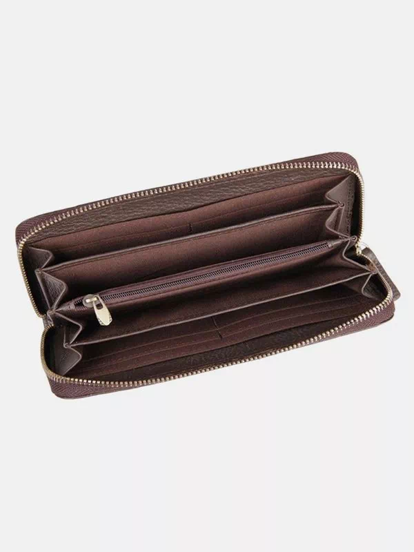 Коричневий фактурний гаманець-клатч з натуральної шкіри