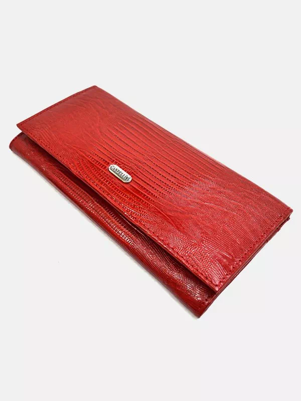 Фактурний гаманець з червоної лакованої шкіри «під рептилію»