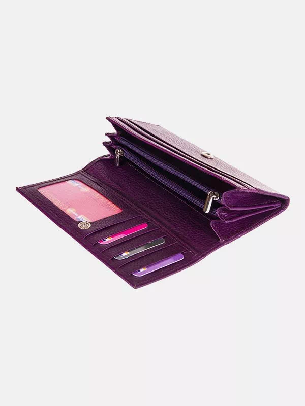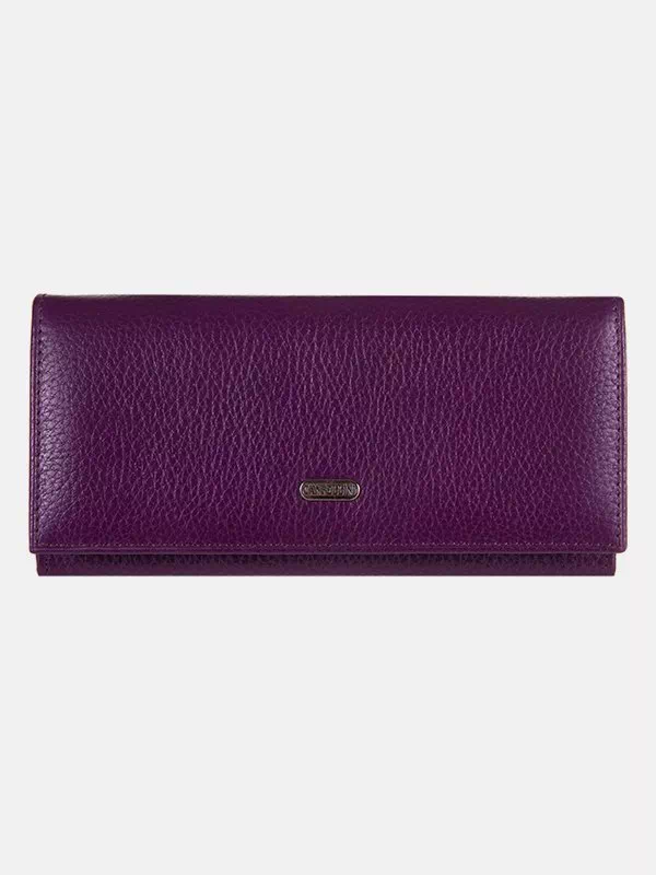 Фіолетовий гаманець з зернистої натуральної шкіри флотар