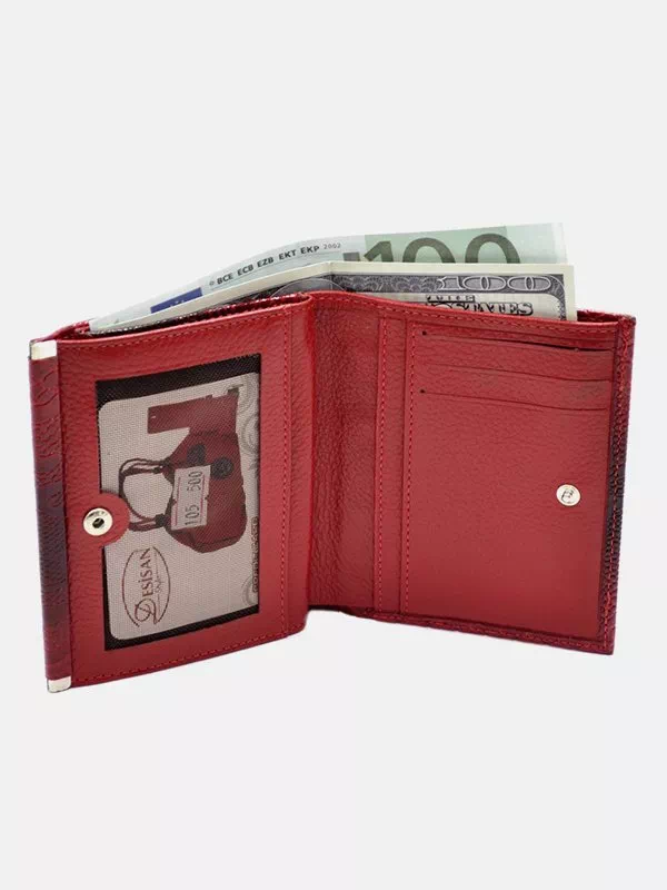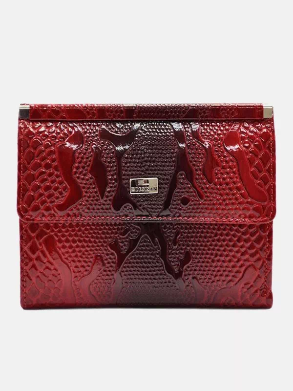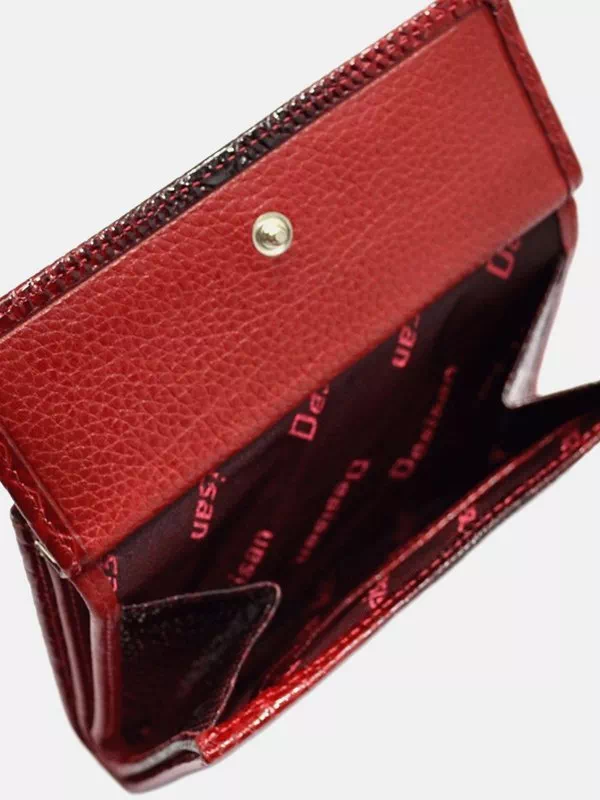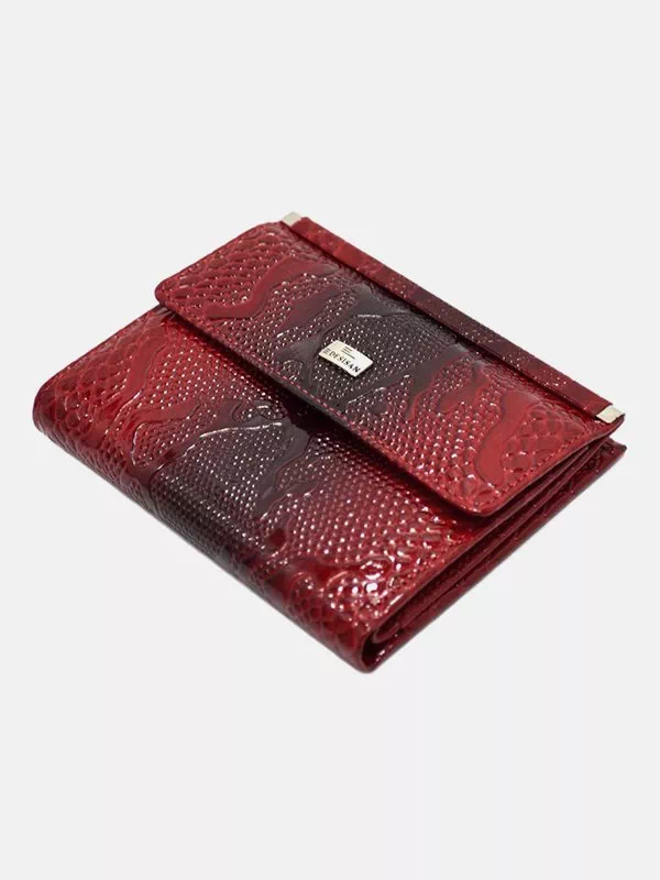 Червоний компактний гаманець з фактурної лакованої шкіри