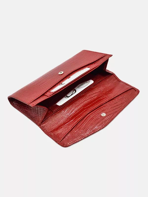 Жіночий гаманець D-1313 – відмінний варіант для використання з будь-яким стилем. Виготовлений з фактурної натуральної шкіри з лаковим на пиленням у червоному виконанні. Аксесуар невибагливий за доглядом, має вишуканий зовнішній вигляд, якісний пошив, користується великим попитом на українському ринку. Данний жіночий гаманець вдало підкреслить практично будь-який образ. Чудове рішення в якості подарунку для будь-якої жінки. Країна виробник – Туреччина.