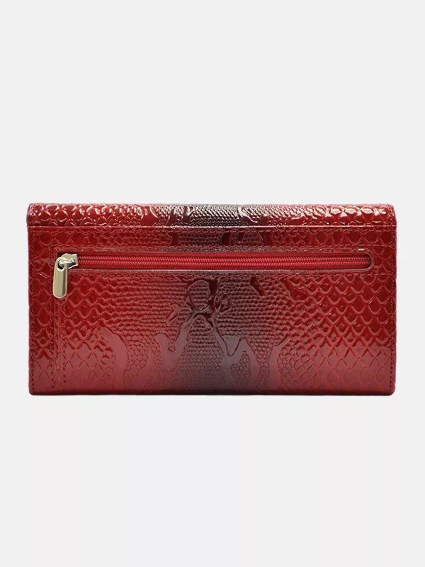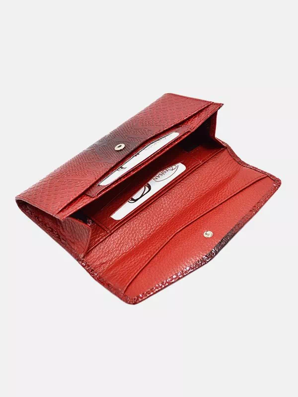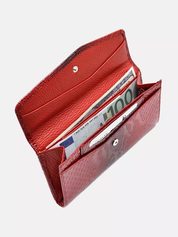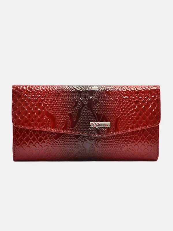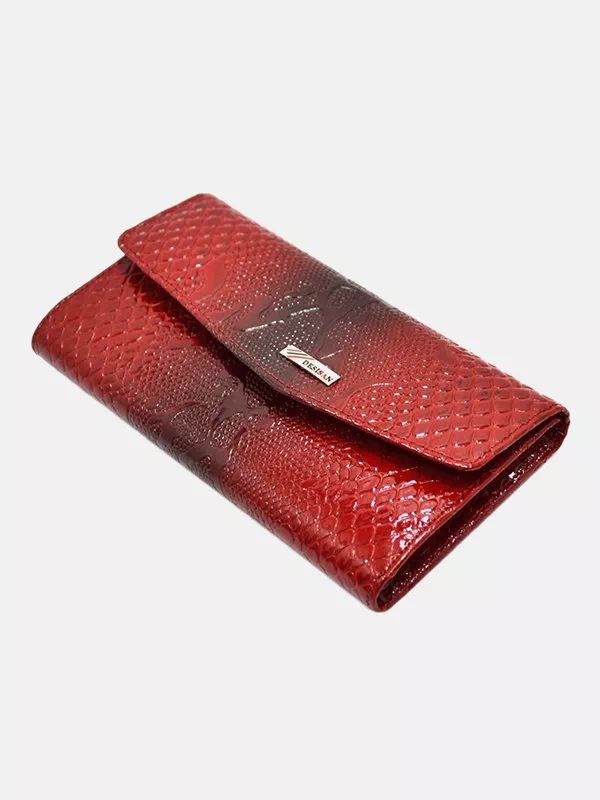 Гаманець червоного кольору з лакованої шкіри «під рептилію»