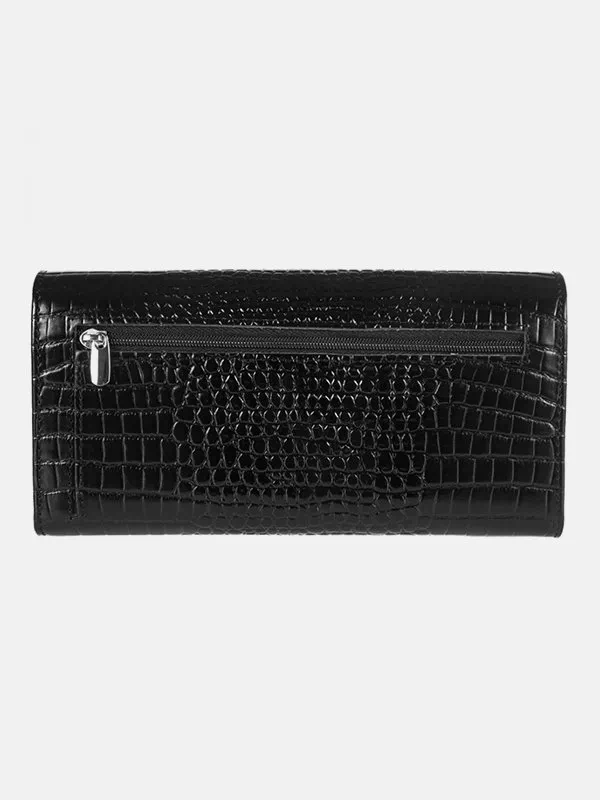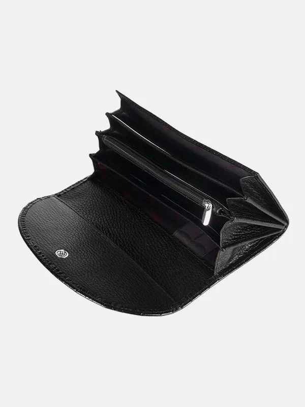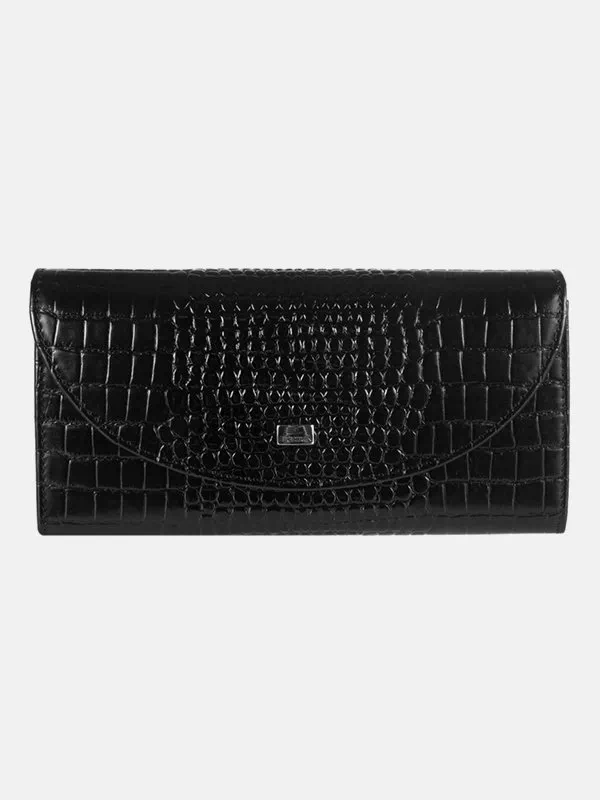 Чорний гаманець з фактурної шкіри «під крокодила»