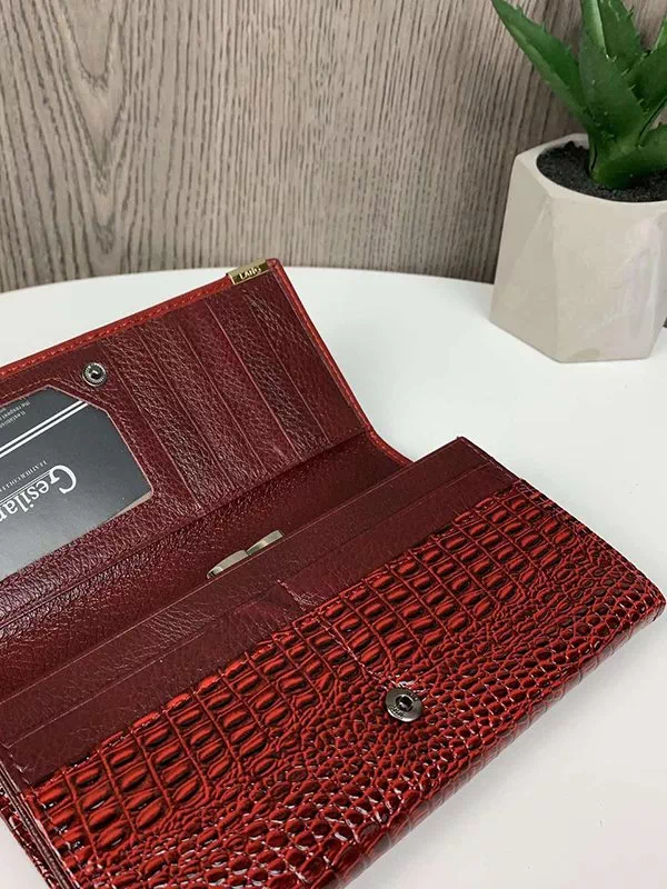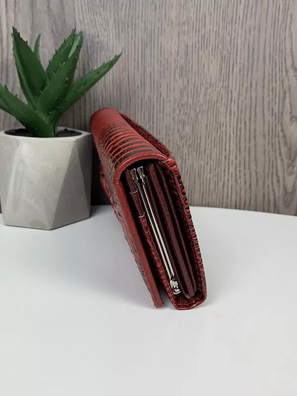Жіночий гаманець K-119 – чудовий вибір для використання з будь-яким стилем. Виготовлений з фактурної натуральної шкіри «під крокодила» у червоному виконанні. Аксесуар невибагливий за доглядом, має стильний зовнішній вигляд, якісний пошив, користується великим попитом на українському ринку. Данний жіночий гаманець вдало підкреслить практично будь-який образ. Прекрасний варіант на подарунок будь-якій жінці. Країна виробник – Китай.