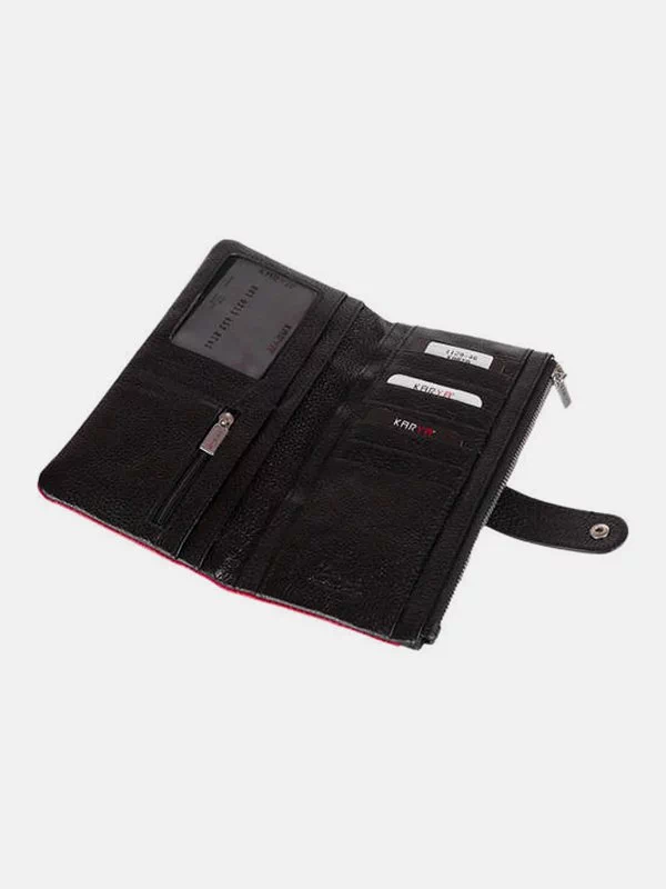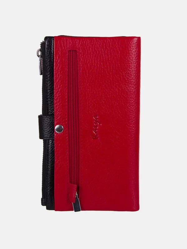 Вертикальний гаманець з чорно-червоної натуральної шкіри