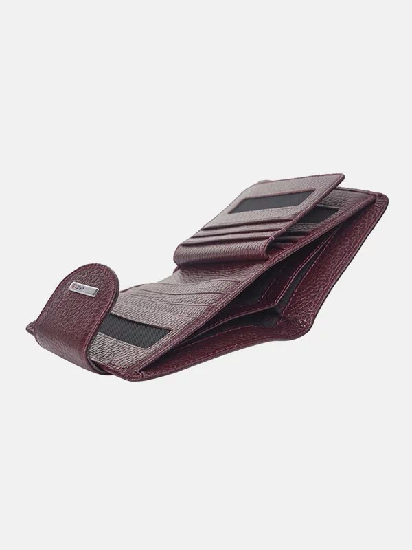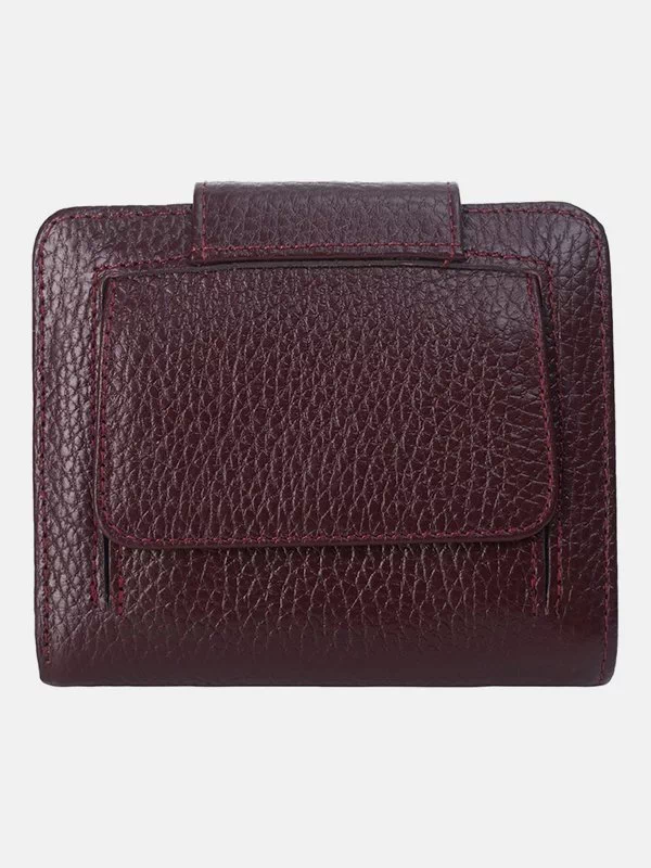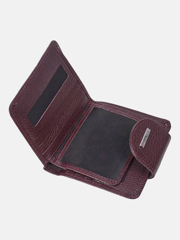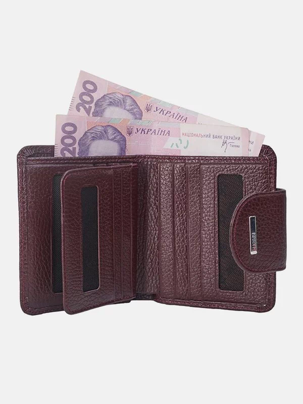 Бордовий компактний гаманець з зернистої натуральної шкіри