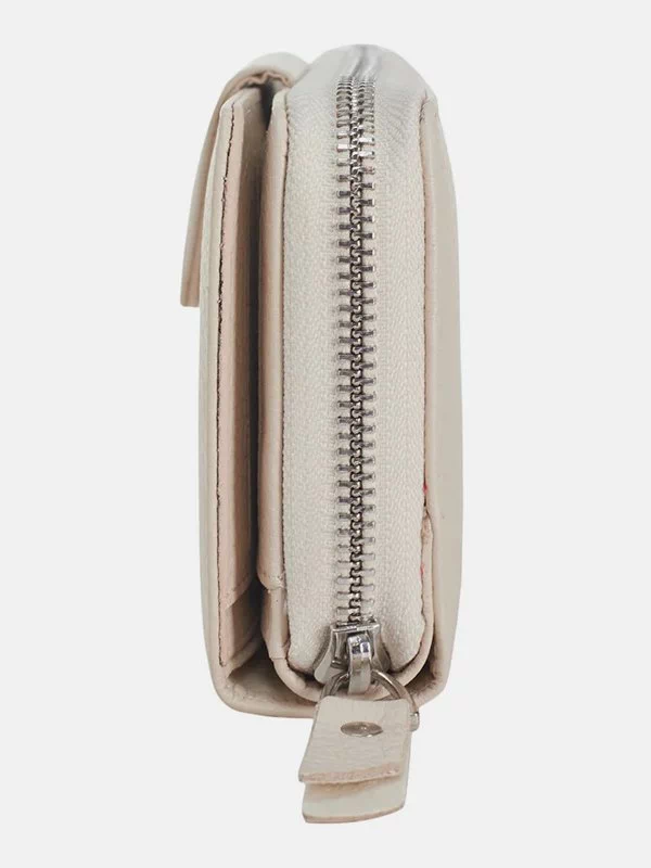 Гаманець з фактурної натуральної шкіри бежевого кольору