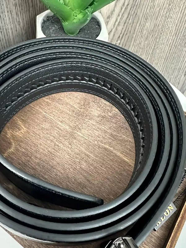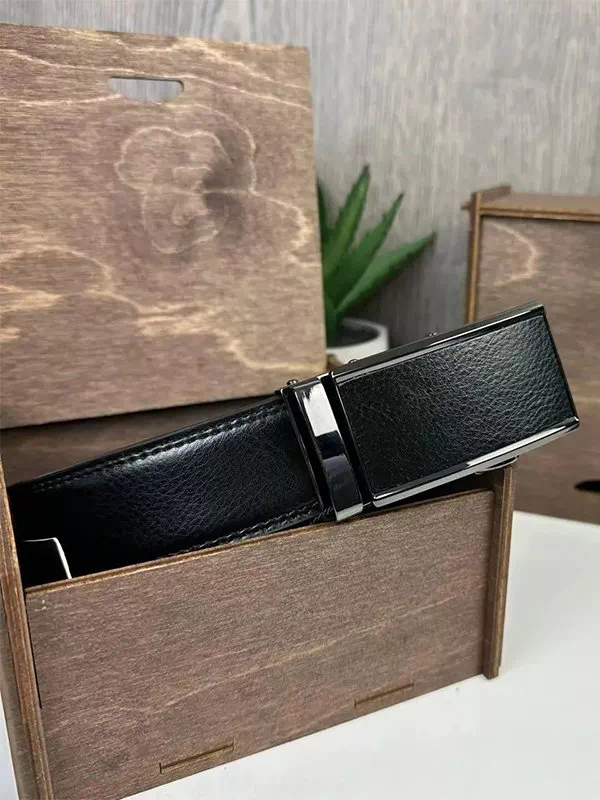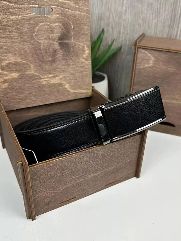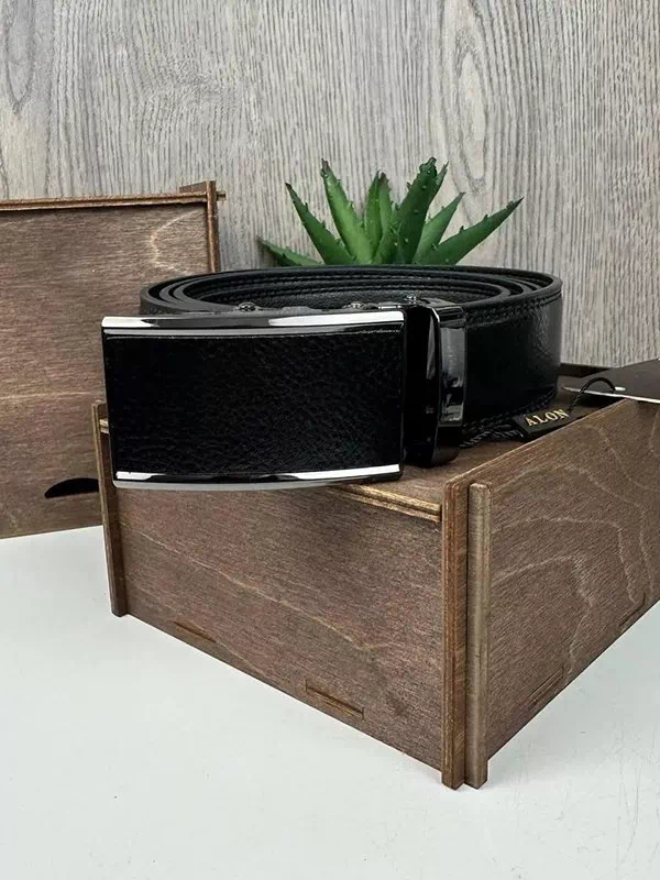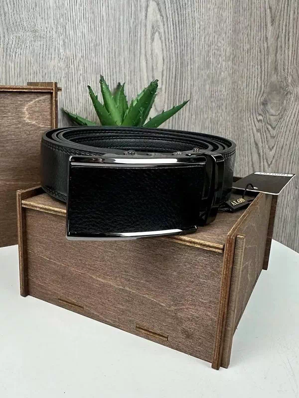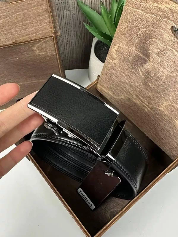 Шкіряний чорний ремінь з автоматичною пряжкою