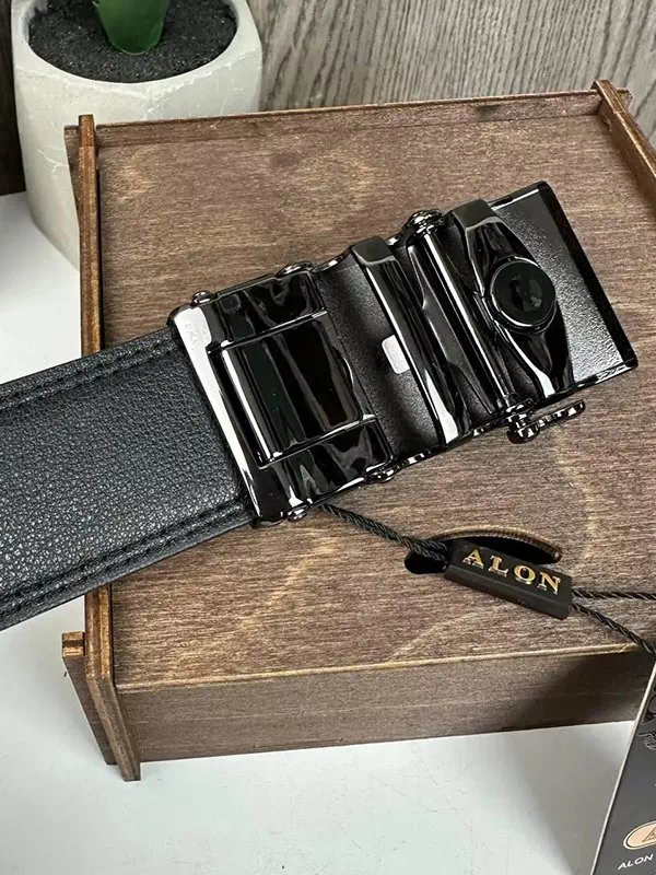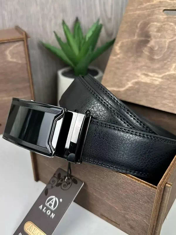 Акуратний чорний шкіряний ремінь з пряжкою-автомат