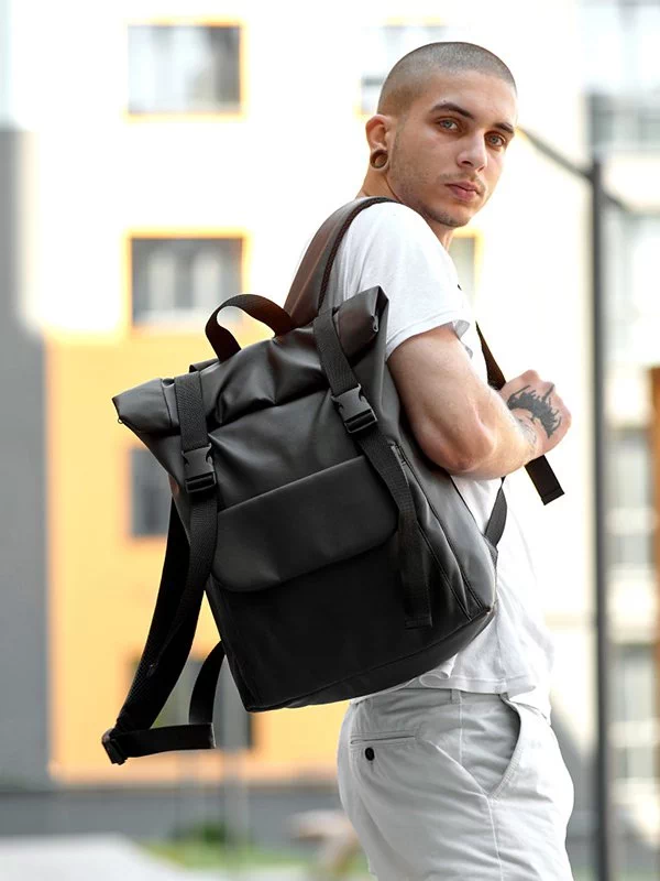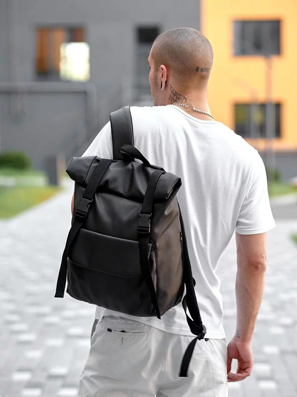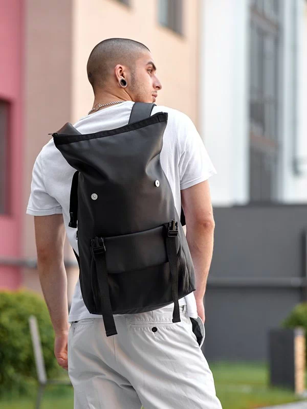 Місткий рюкзак-ролл з еко-шкіри темно-коричневого кольору