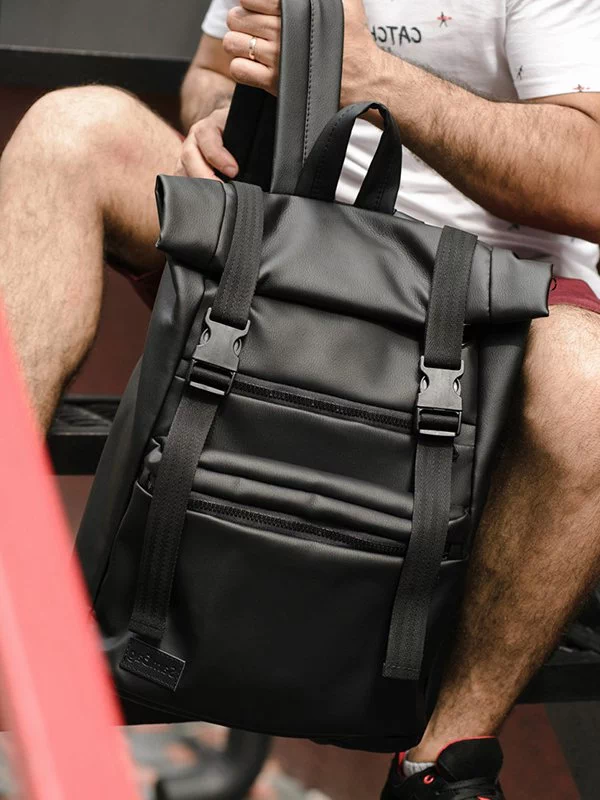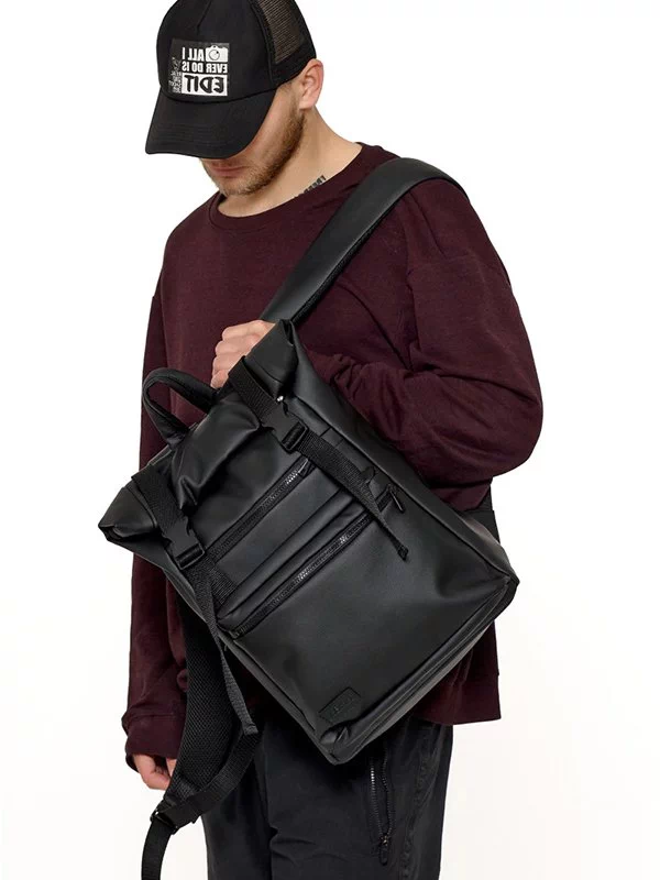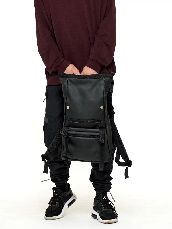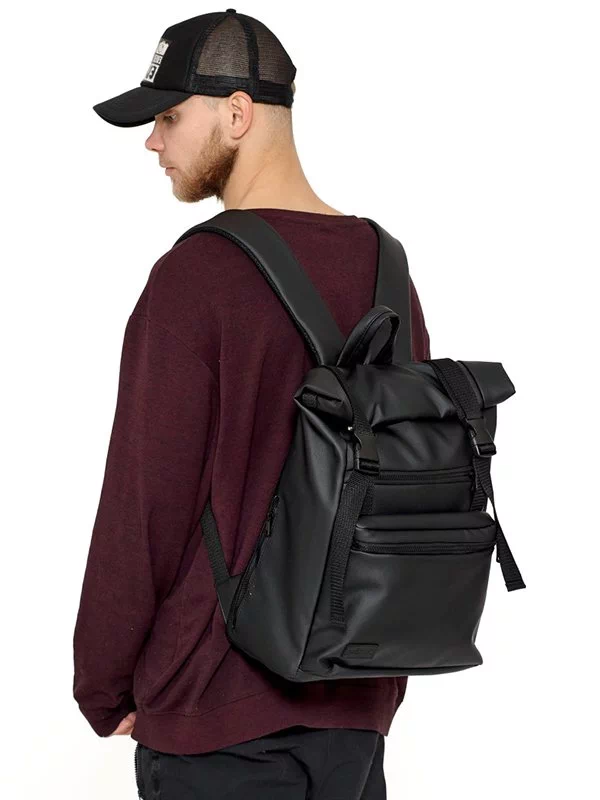 Місткий рюкзак-ролл темно-сірого кольору з еко-шкіри