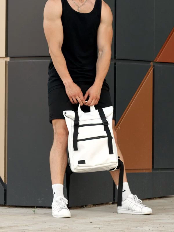 Місткий рюкзак-ролл темно-сірого кольору з еко-шкіри