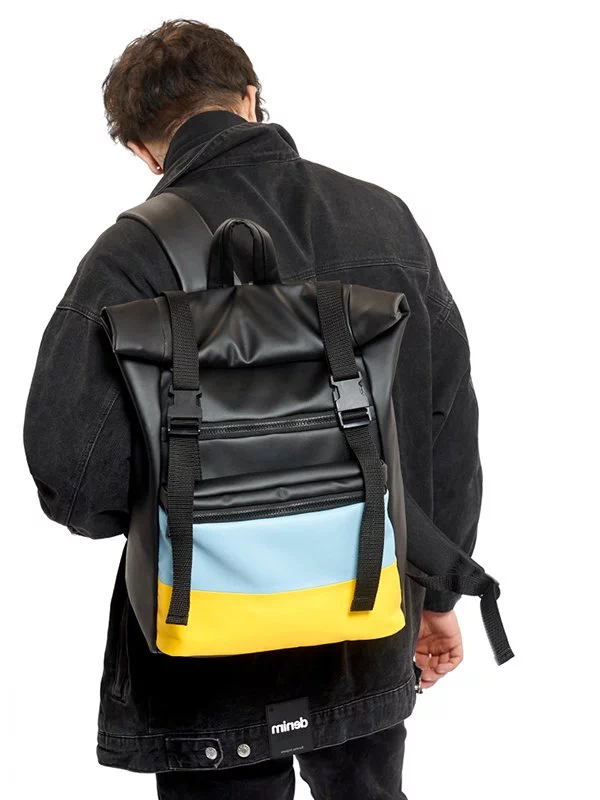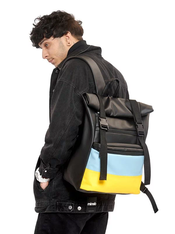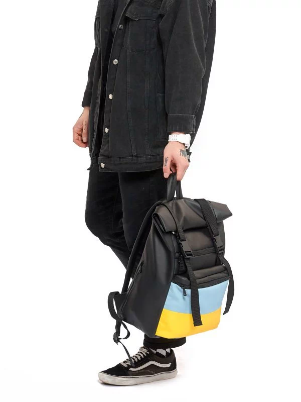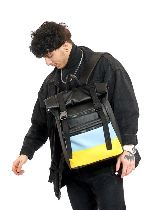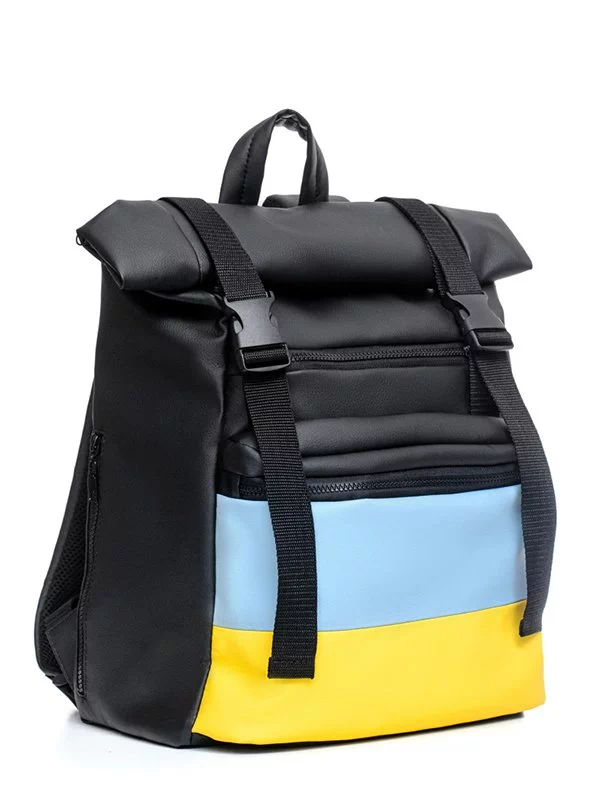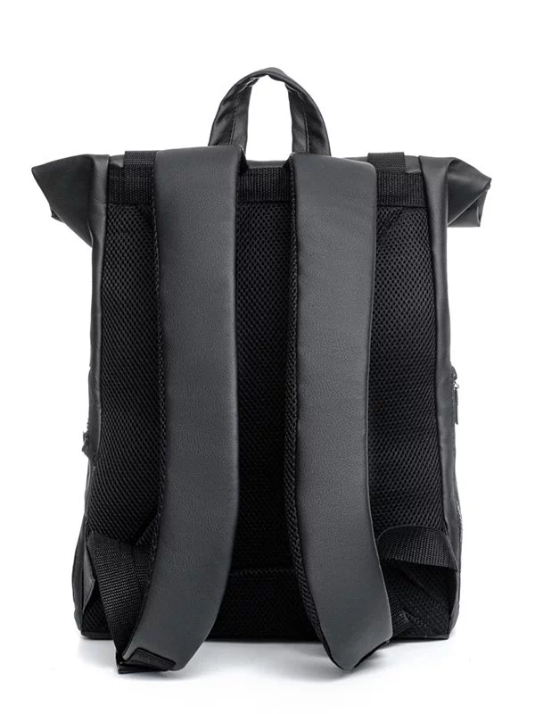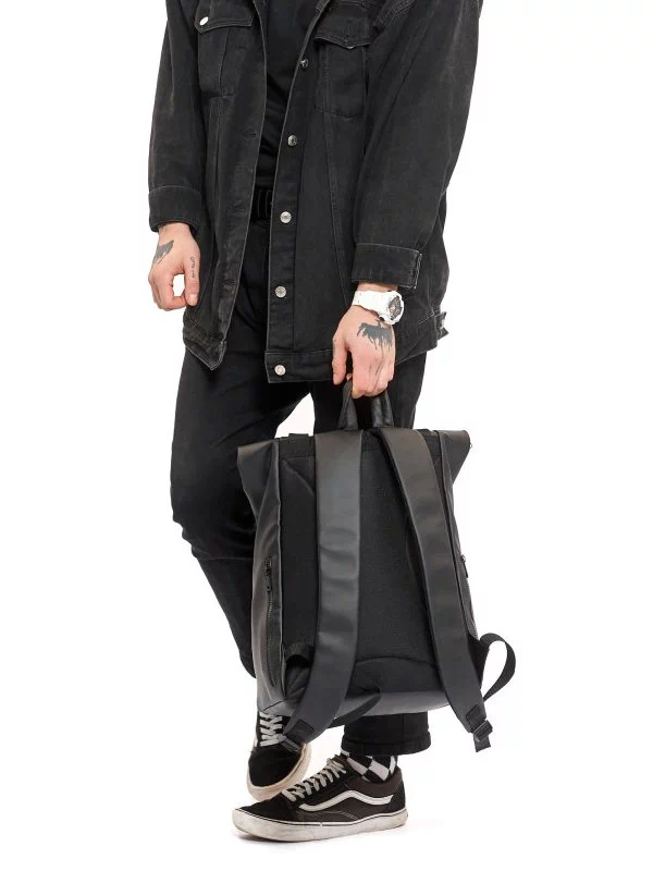 Місткий рюкзак-ролл чорного кольору з еко-шкіри