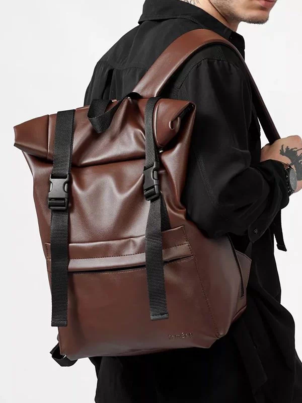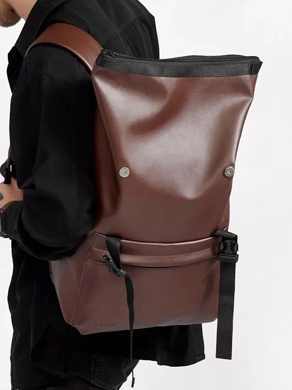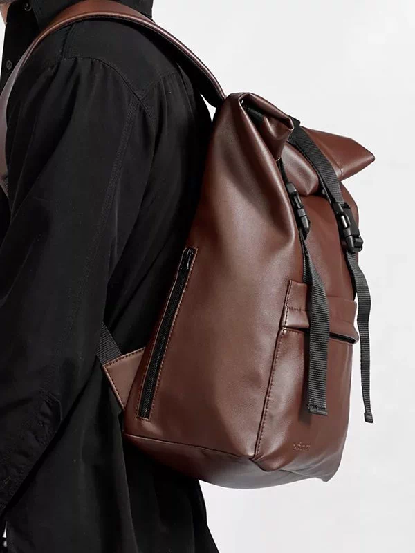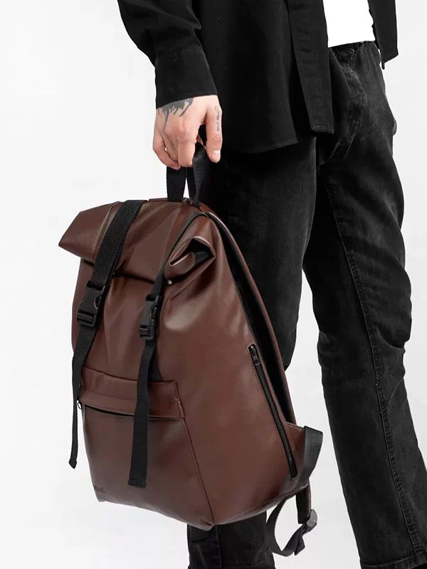 Компактний рюкзак-ролл з чорної еко-шкіри