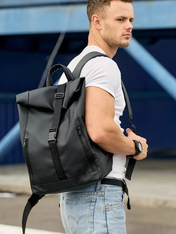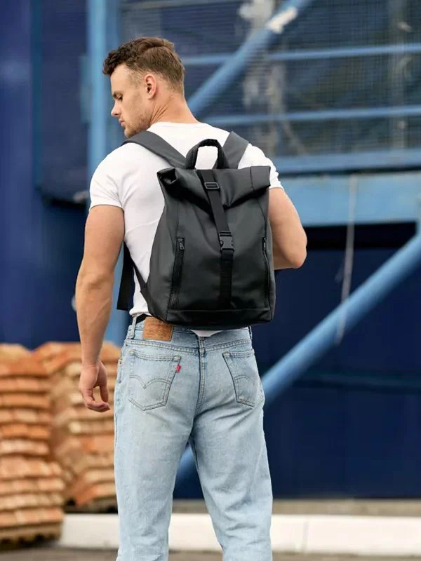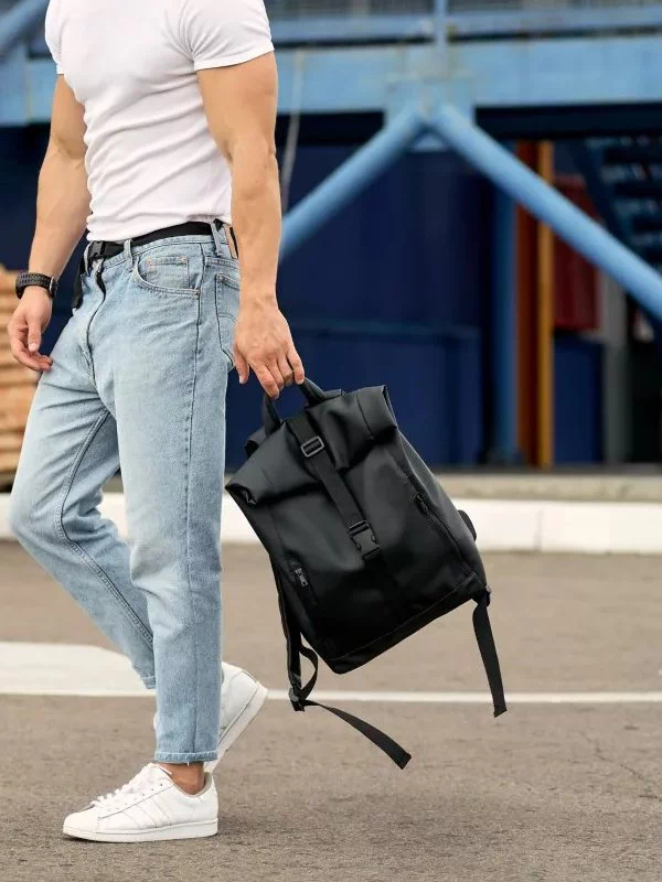 Яскравий чоловічий рюкзак чорного кольору на всі випадки життя.