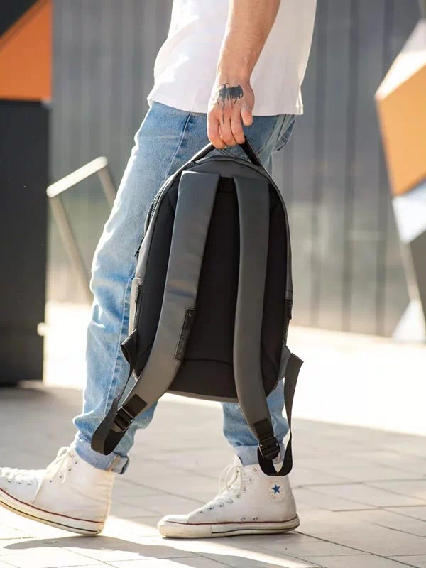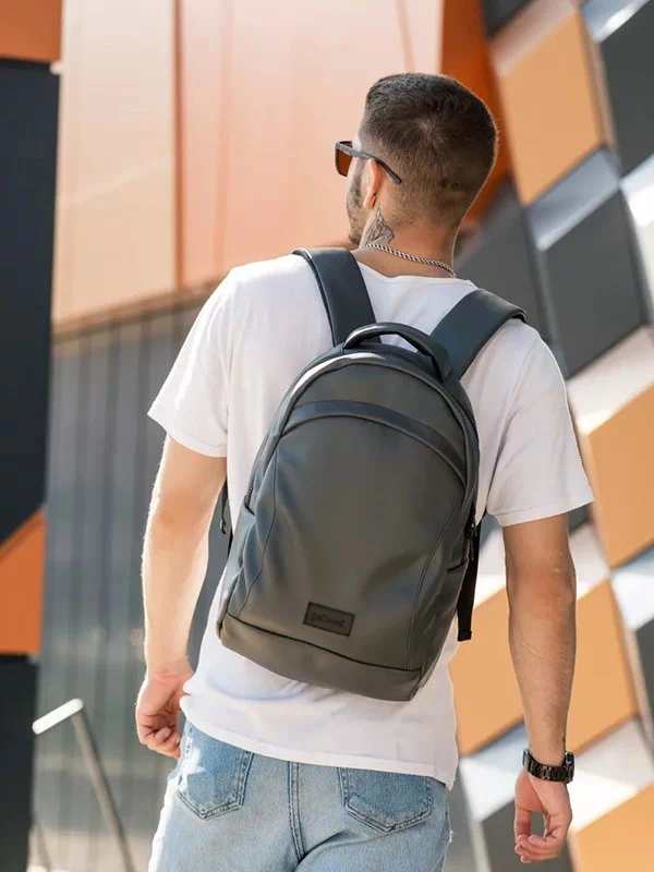 Яскравий чоловічий рюкзак графітового кольору на всі випадки життя.