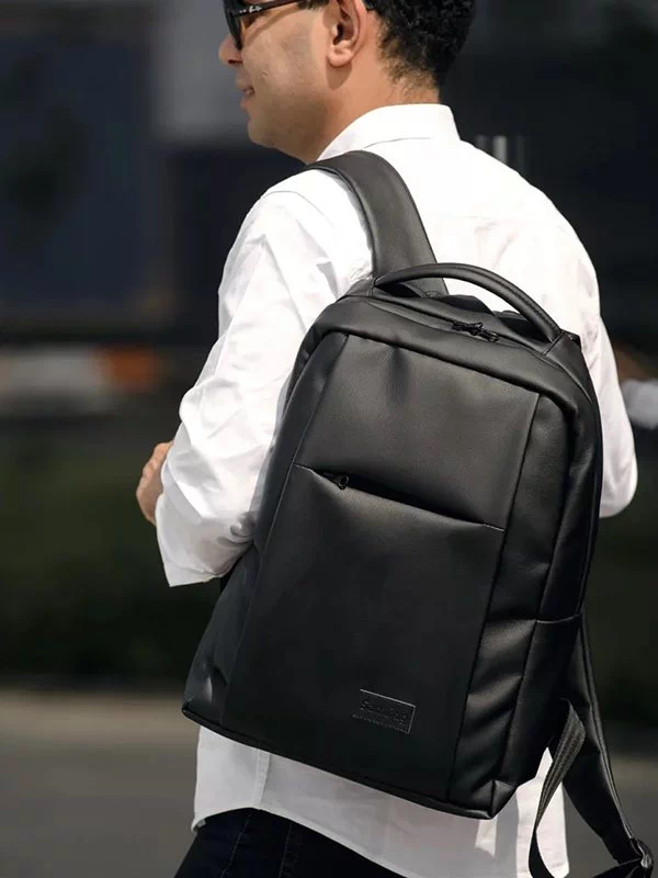 Рюкзак-ролл з еко-шкіри чорного кольору
