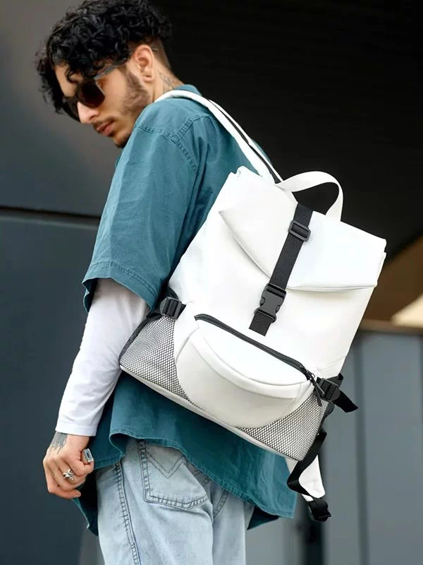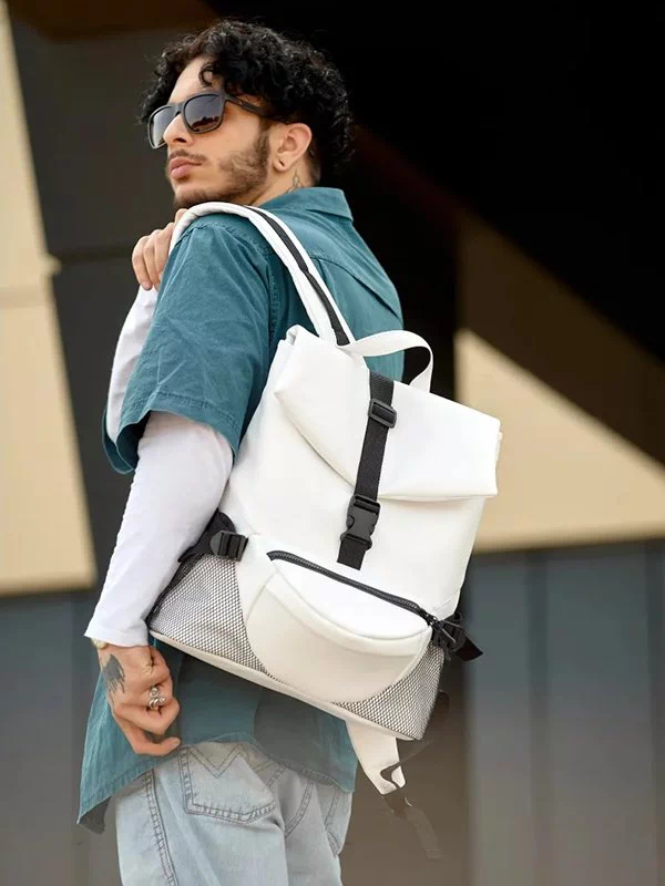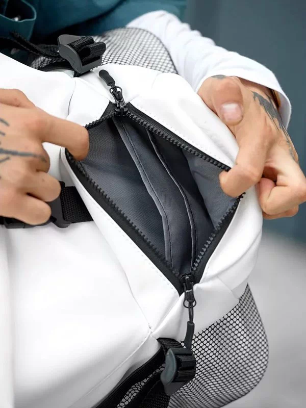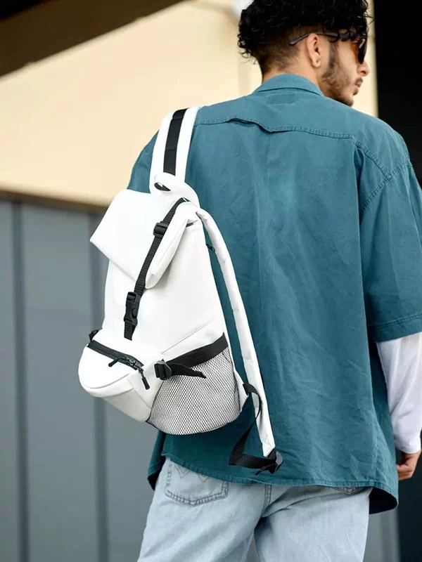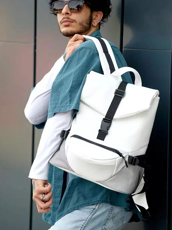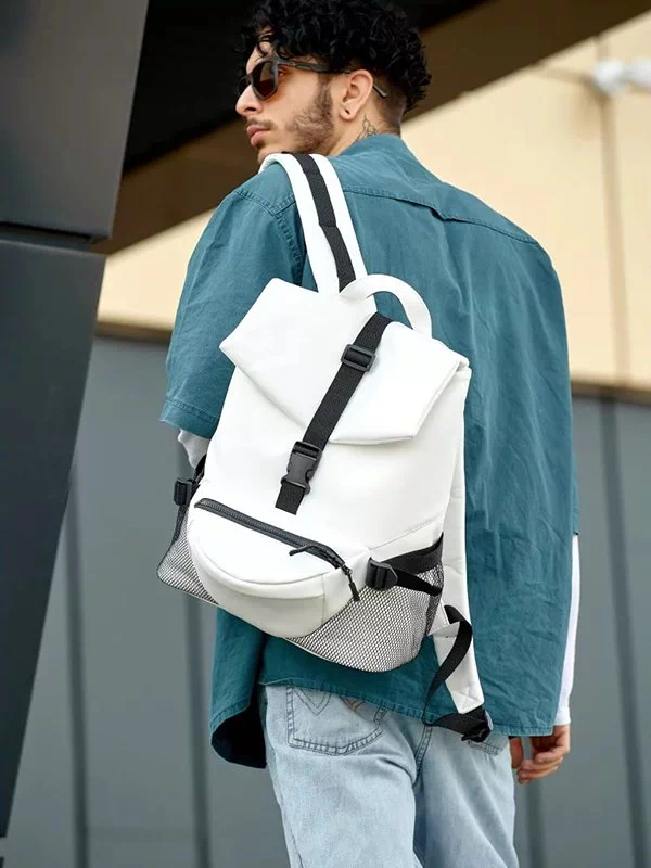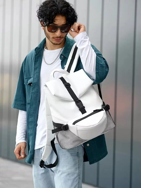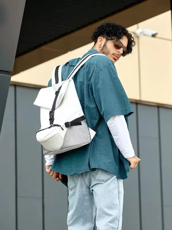 Цікавий чоловічий рюкзак білого кольору на всі випадки життя.
