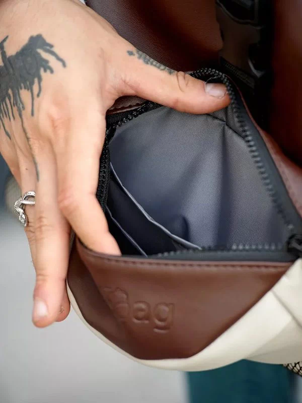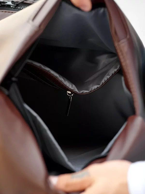 Елегантний бежево-чорний рюкзак з еко-шкіри