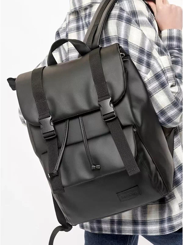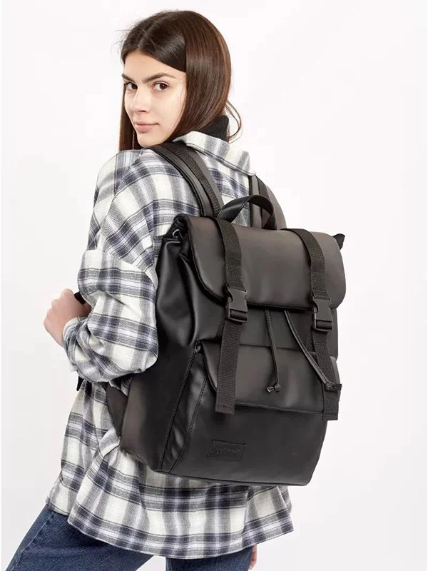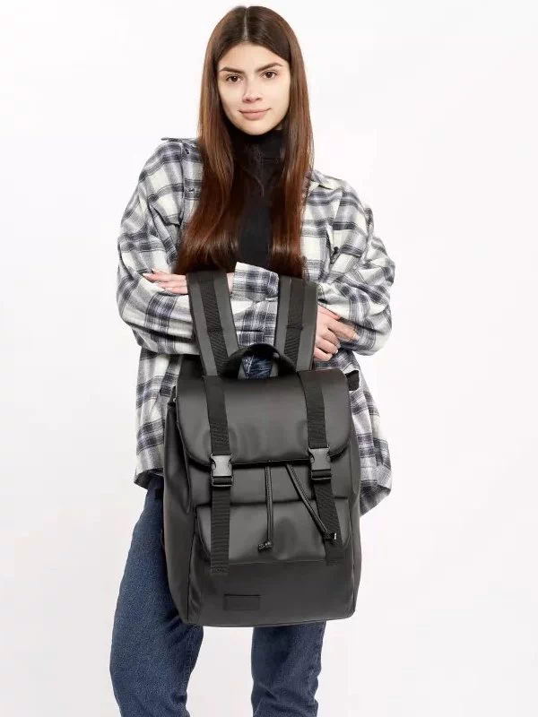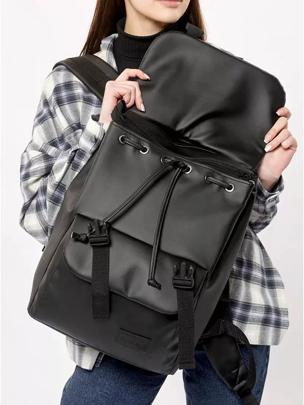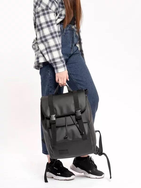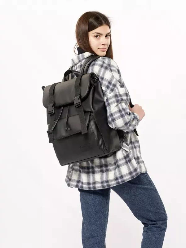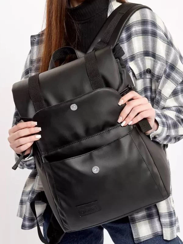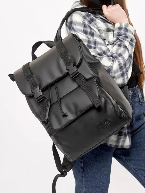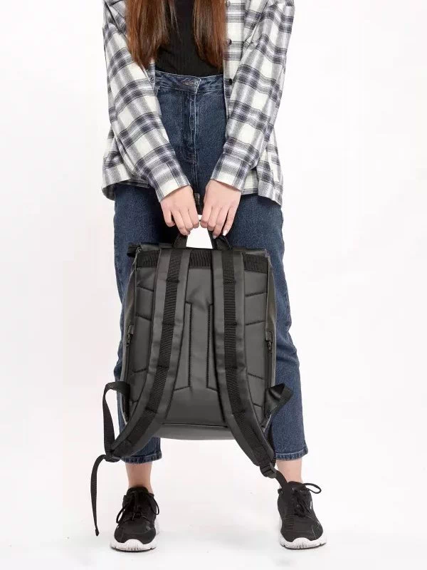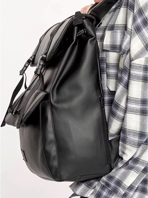 Компактний чорний рюкзак-ролл з еко-шкіри