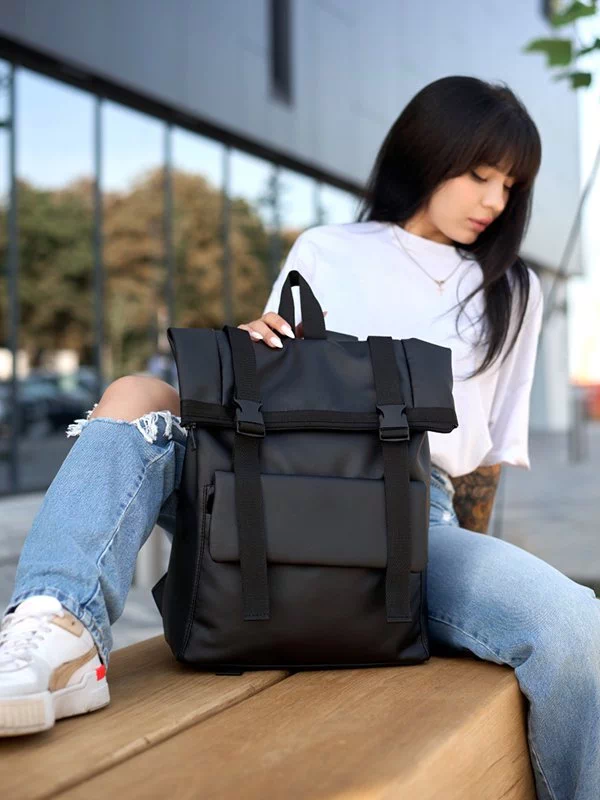 Елегантний міський рюкзак з чорної еко-шкіри