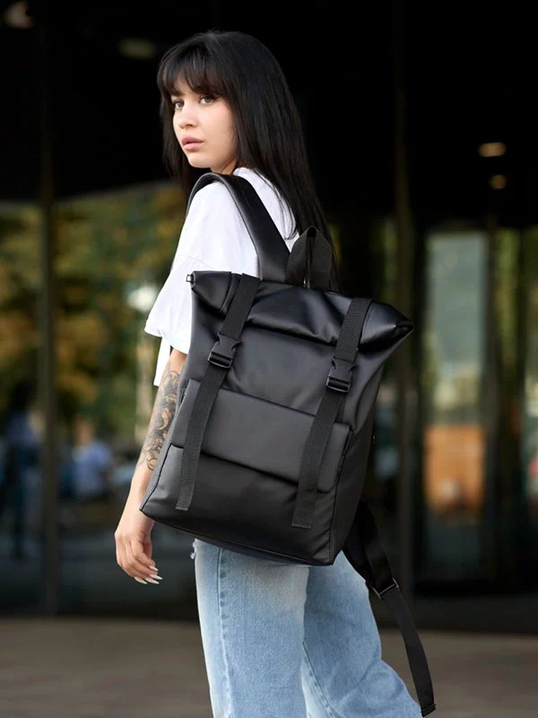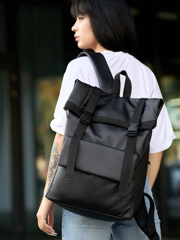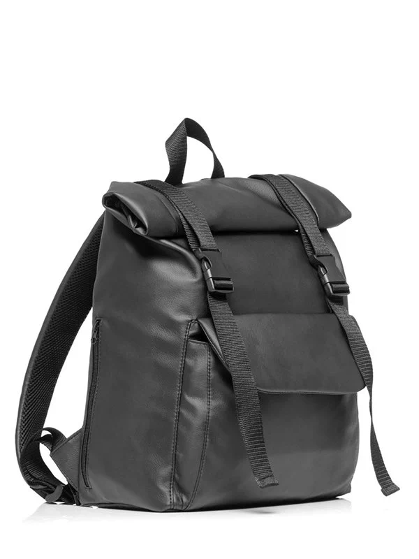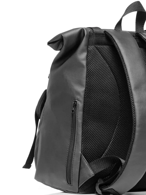 Місткий рюкзак-ролл у графітовому кольорі з еко-шкіри
