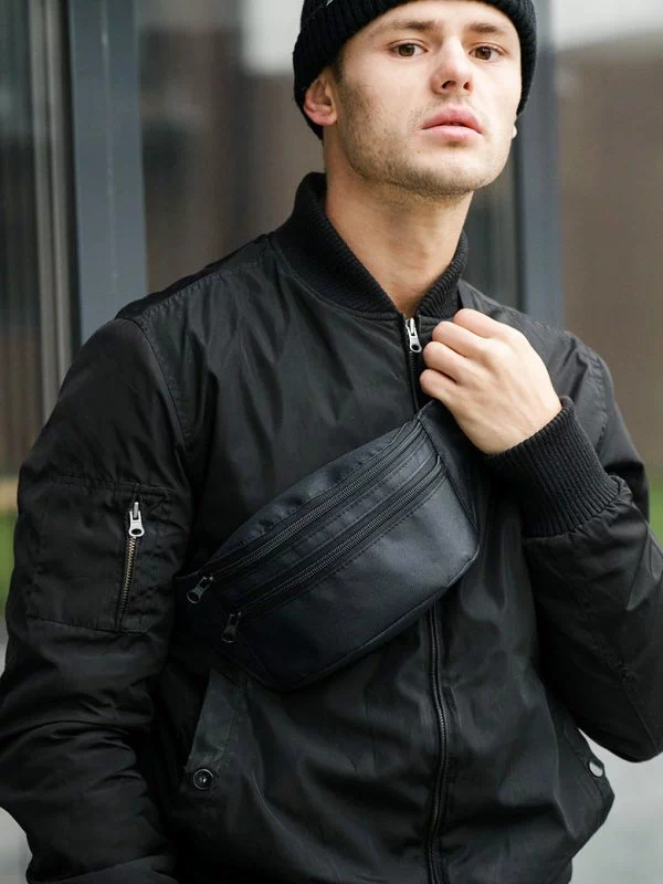 Трендова чоловіча сумка-бананка у чорному виконанні на будь-які випадки життя.