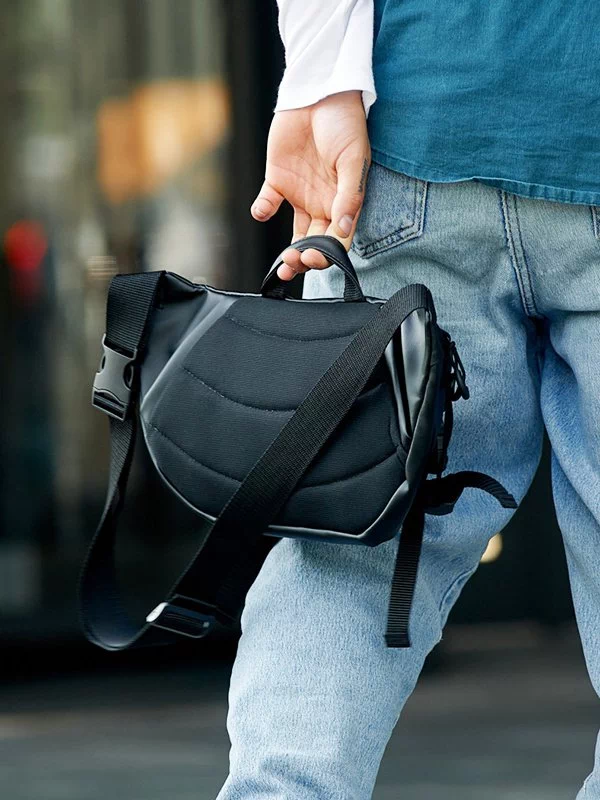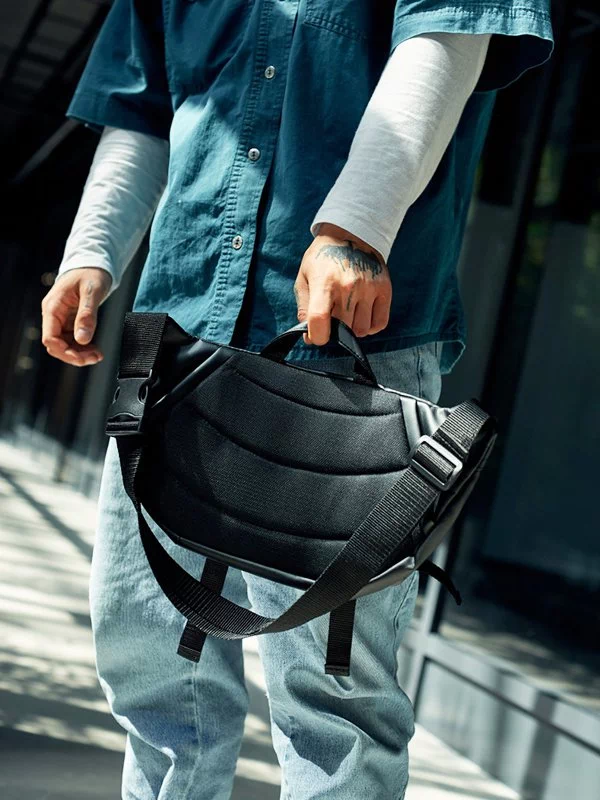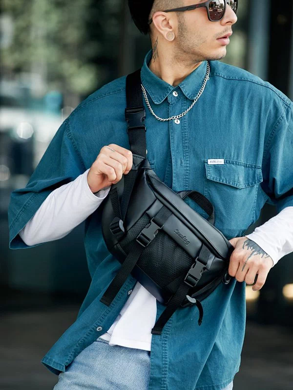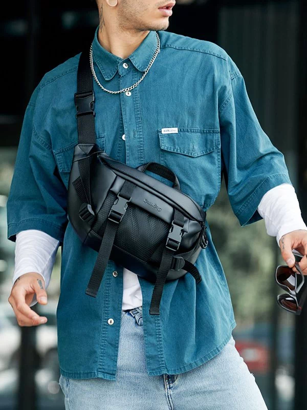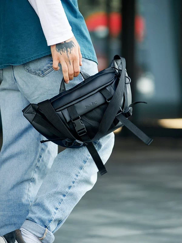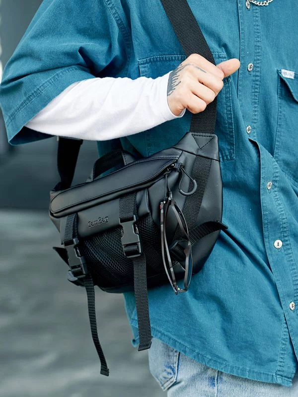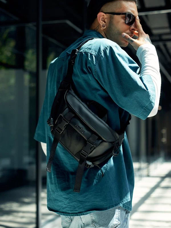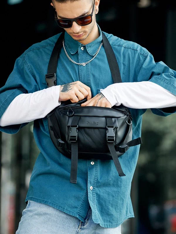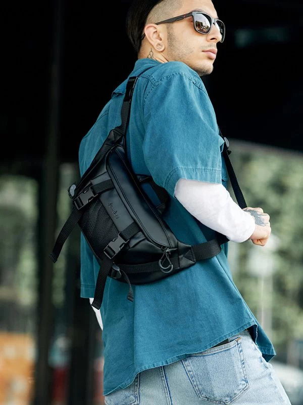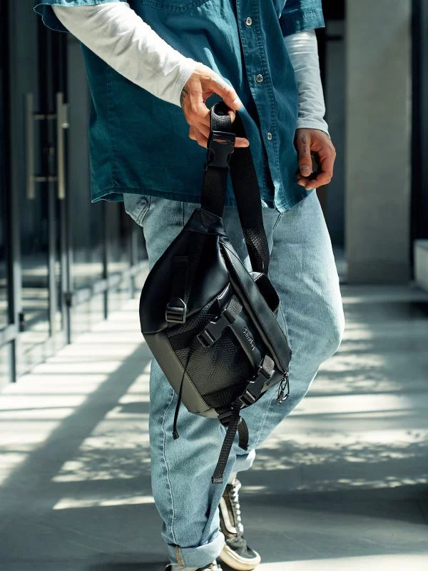 Яскрава чоловіча сумка-бананка чорного кольору на будь-які випадки життя.