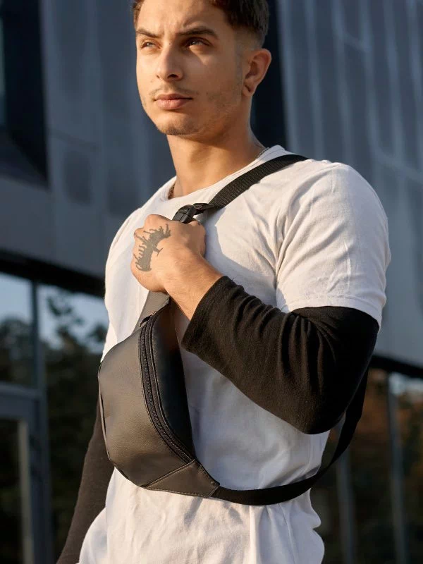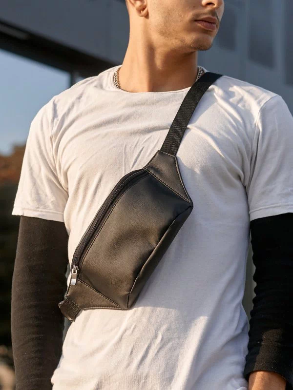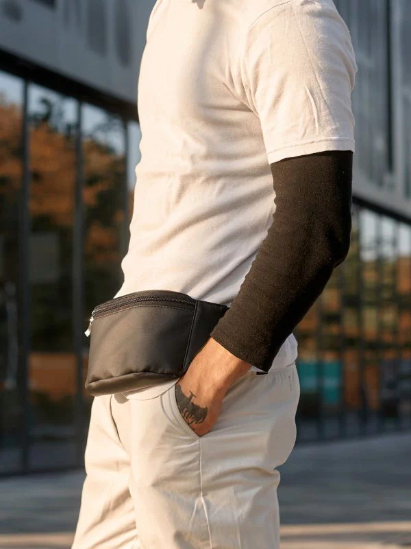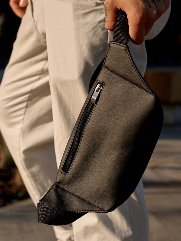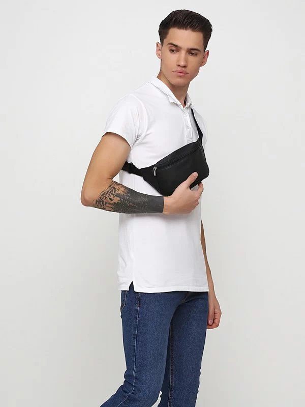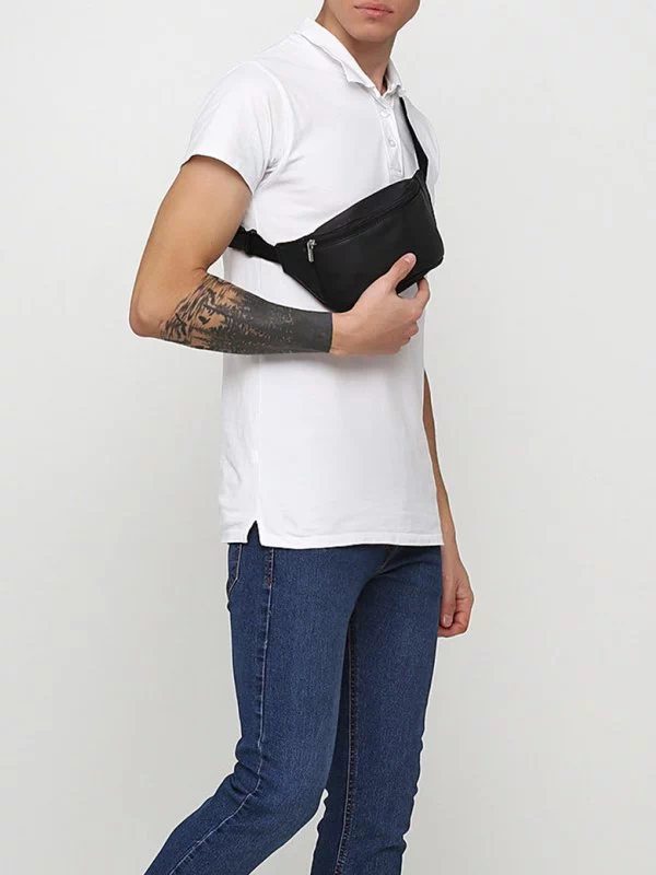 Вражаюча чоловіча сумка-бананка чорного кольору на будь-які випадки життя.