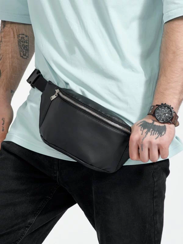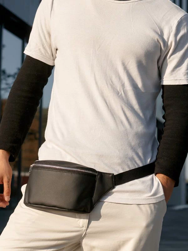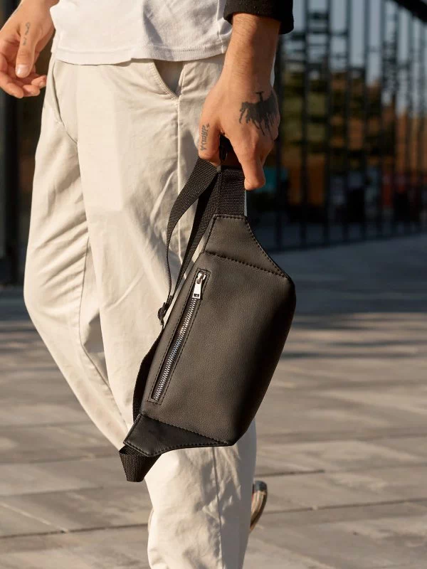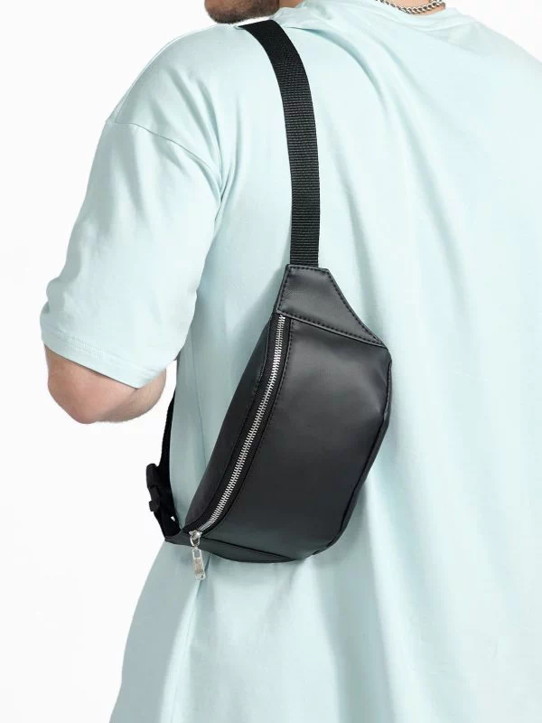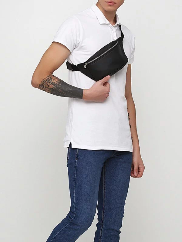 Поясна сумка-бананка у чорному виконанні з еко-шкіри