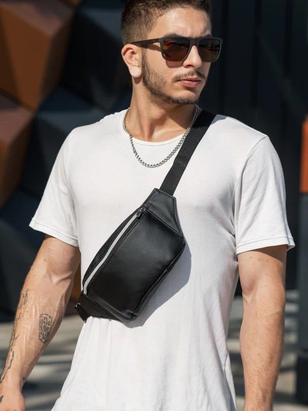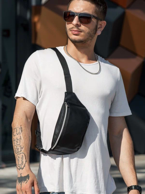 Потужна чоловіча сумка-бананка чорного кольору на будь-які випадки життя.