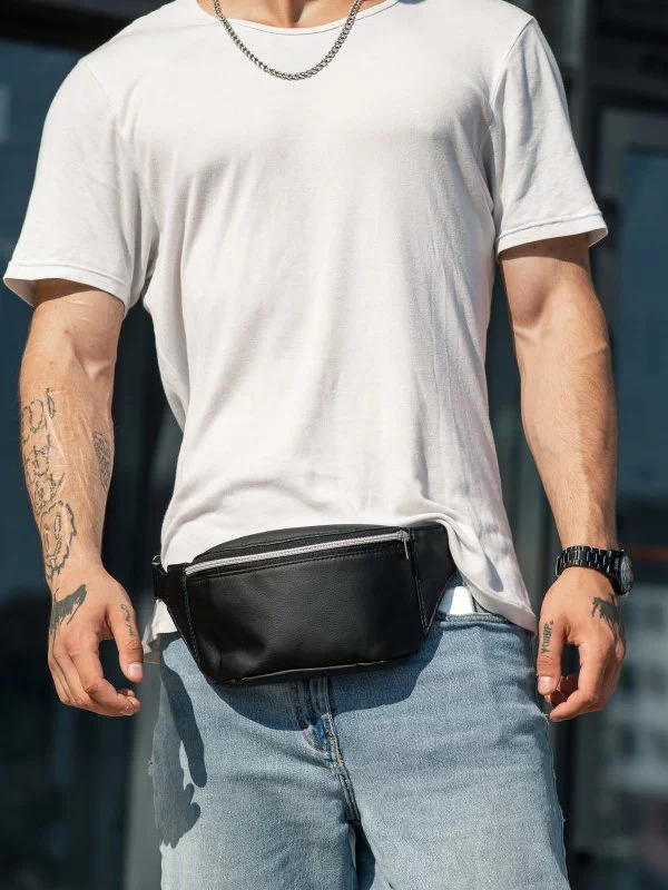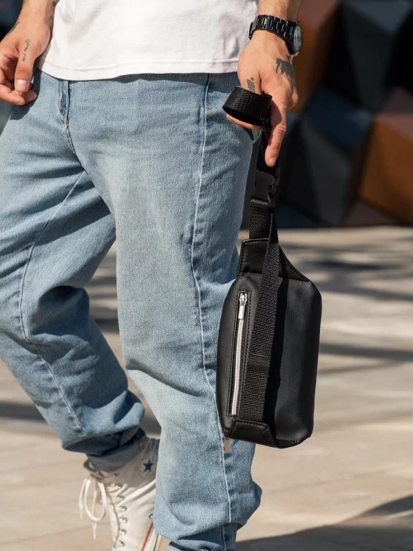 Поясна сумка-бананка у чорному виконанні з еко-шкіри