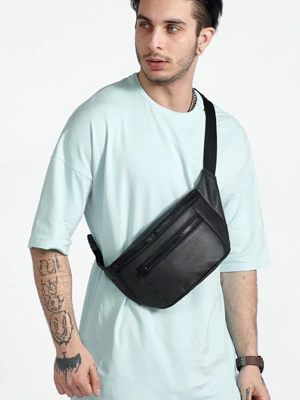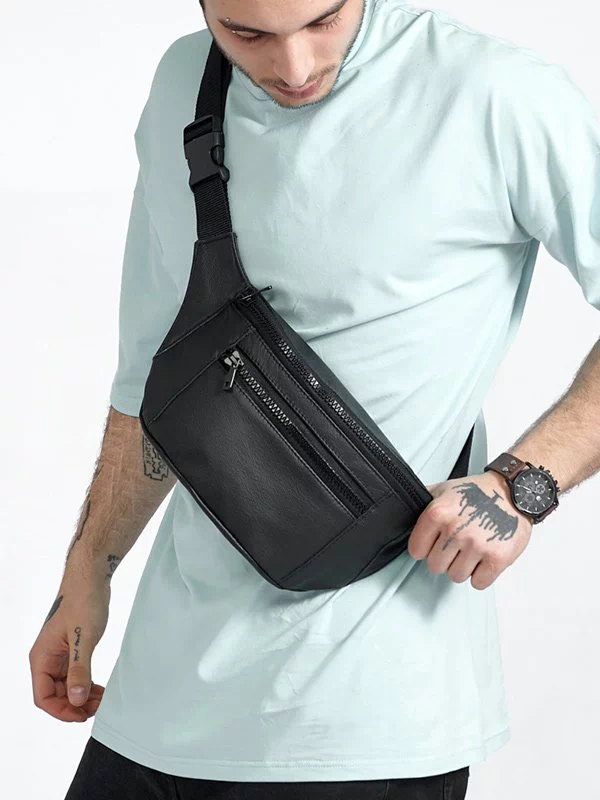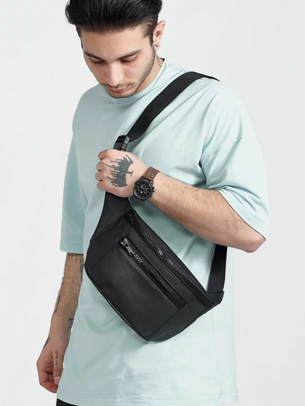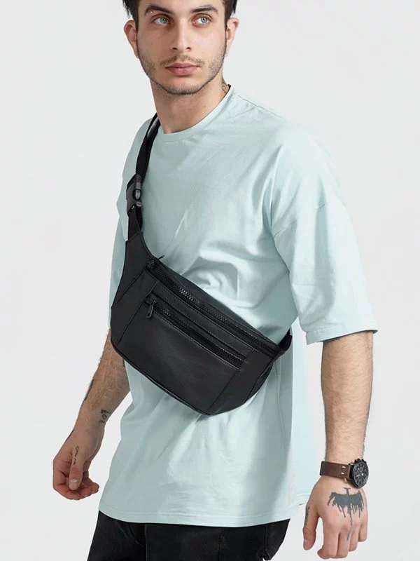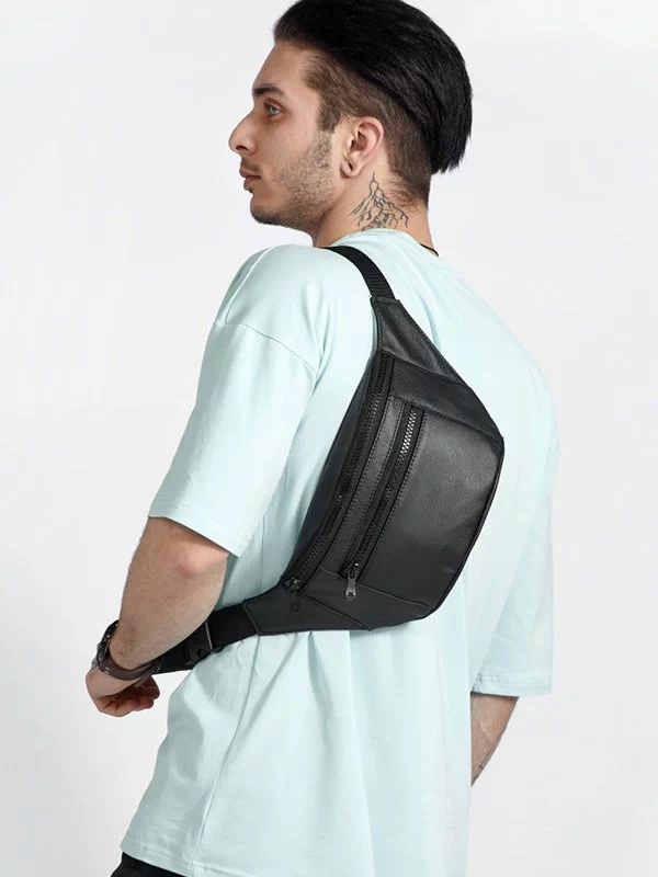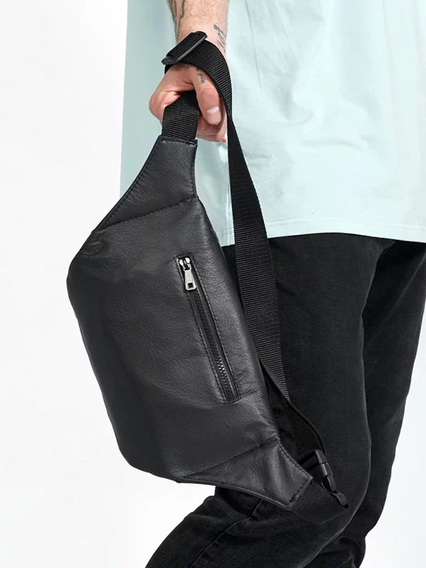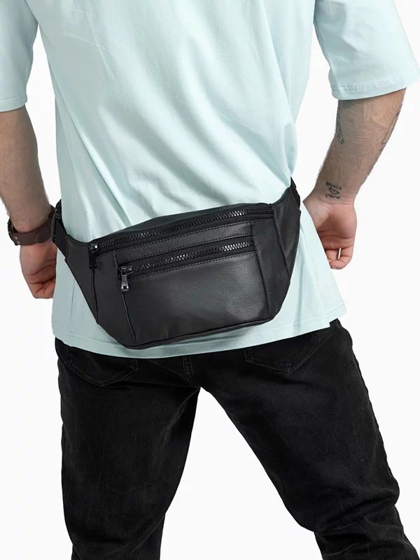 Шикарна чоловіча сумка-бананка чорного кольору на будь-які випадки життя.