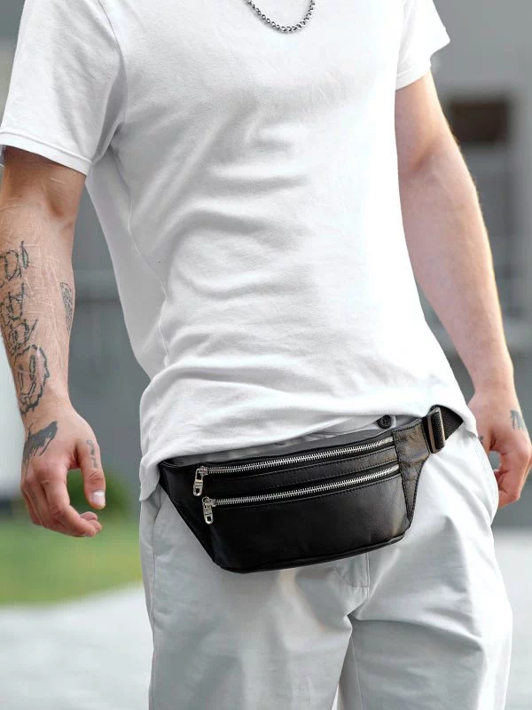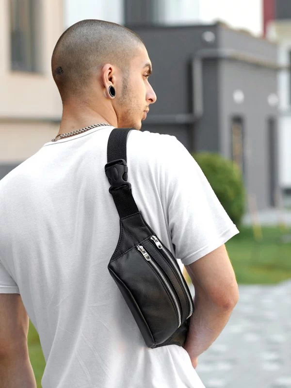 Стильна сумка на пояс (бананка) шкіряна чорна