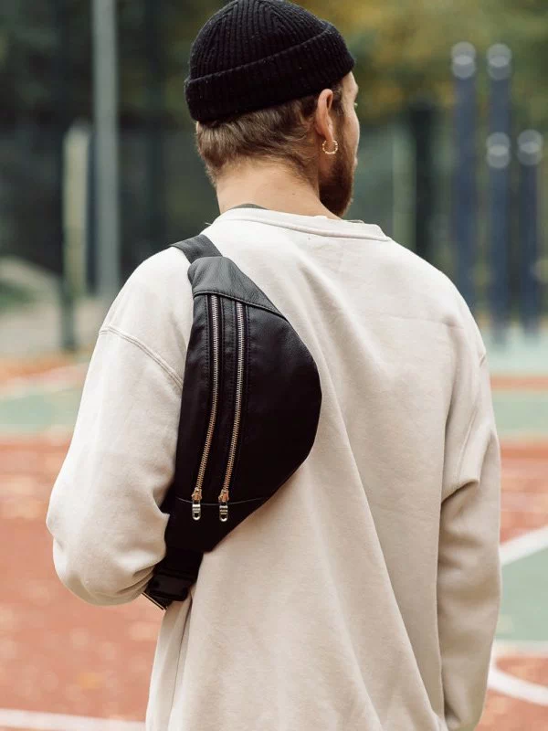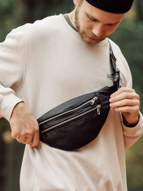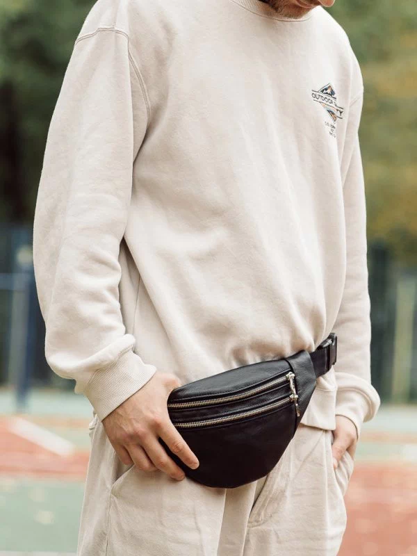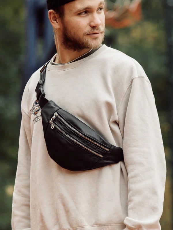 Чудова чоловіча сумка-бананка чорного кольору на будь-які випадки життя.
