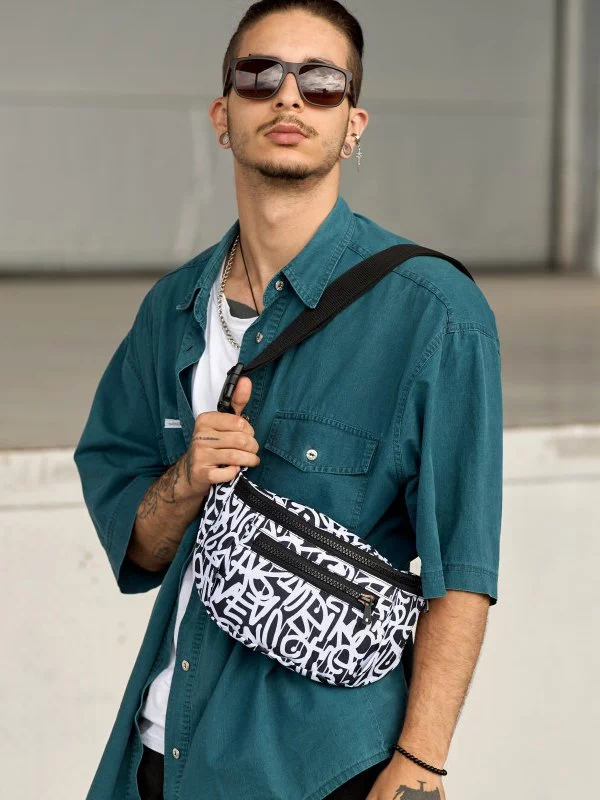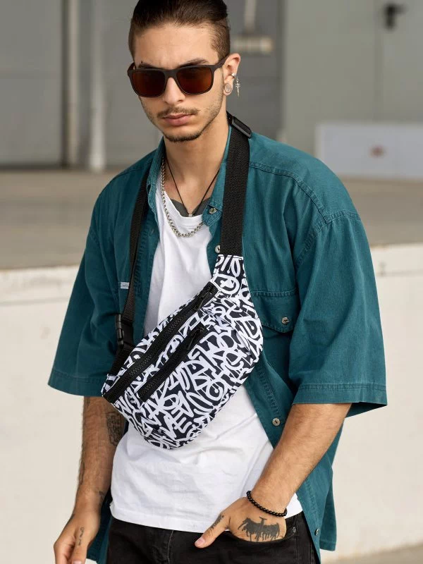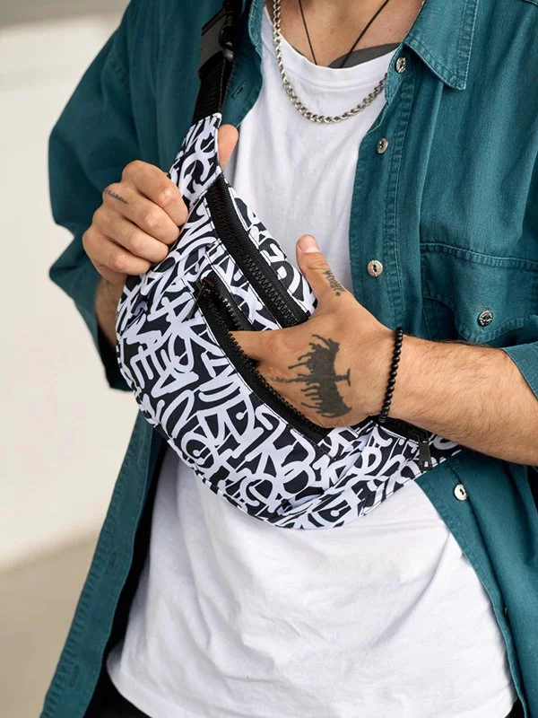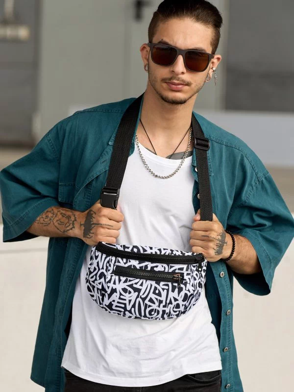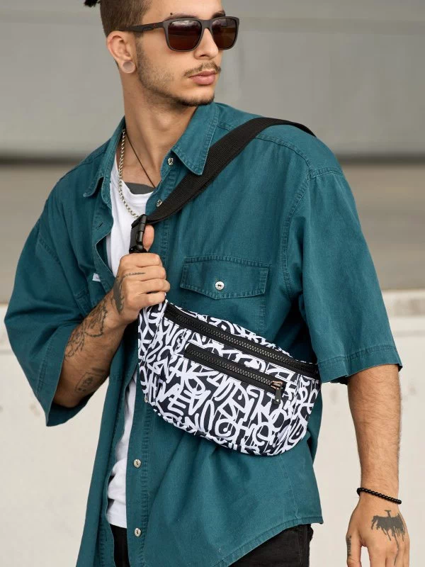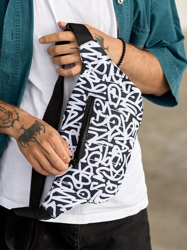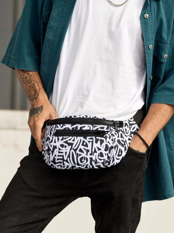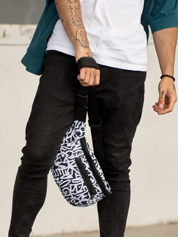 Яскрава чоловіча сумка-бананка у чорно-білому виконанні на будь-які випадки життя.