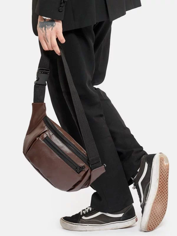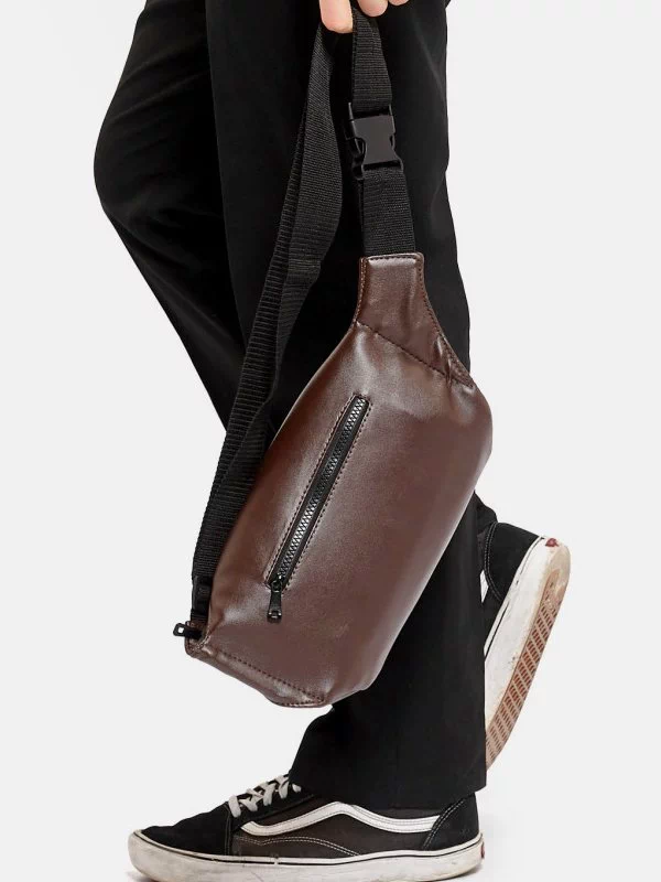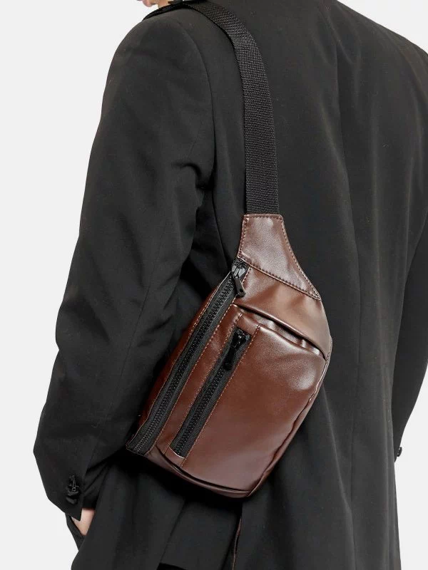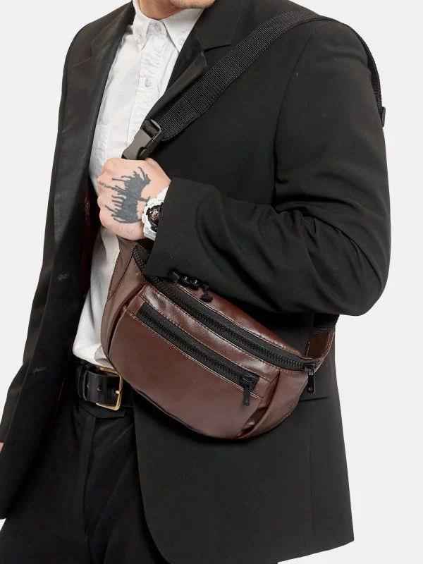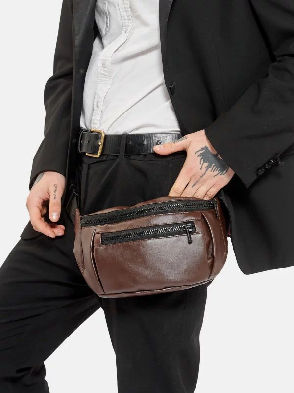Потужна чоловіча сумка-бананка в коричневом исполнении на все випадки життя.