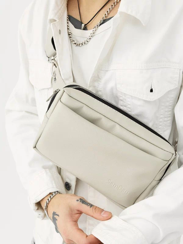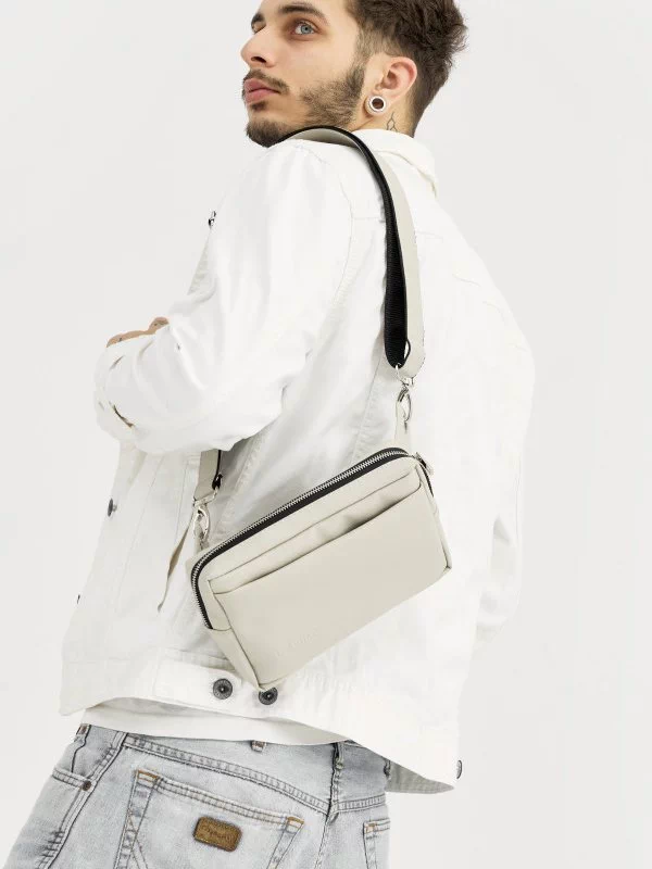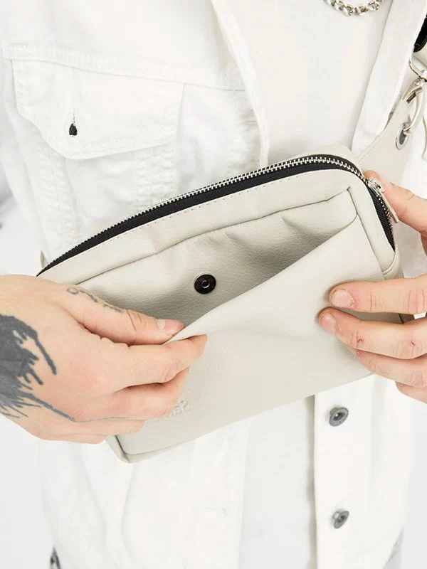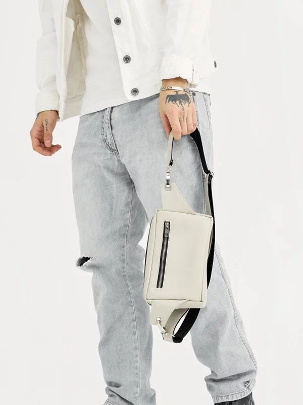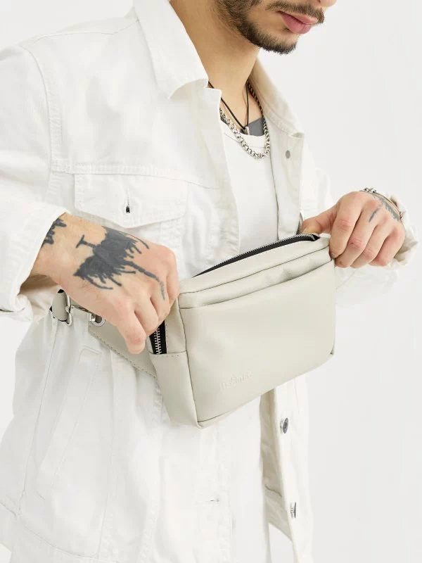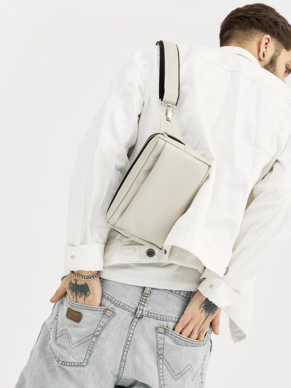 Яскрава чоловіча сумка-бананка у світло-сірому виконанні на всі випадки життя.