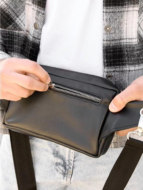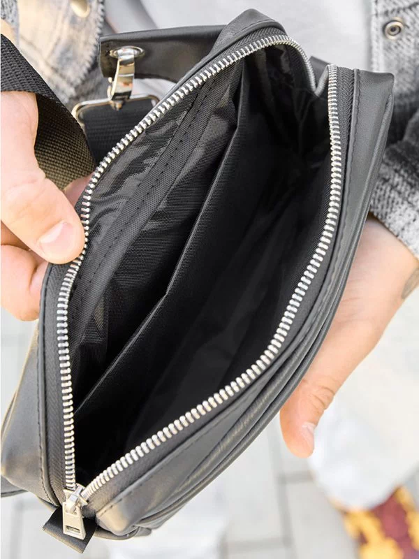 Потужна чоловіча сумка-бананка чорного кольору на будь-які випадки життя.