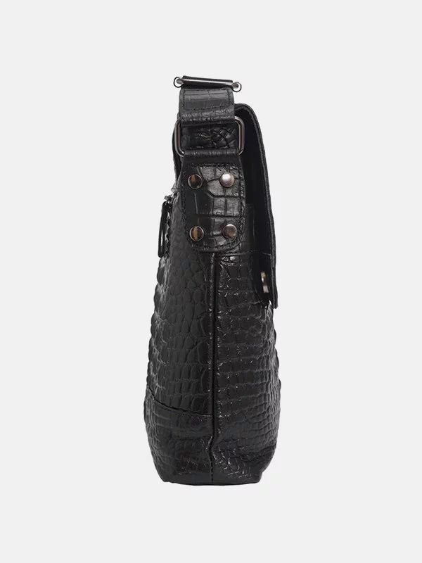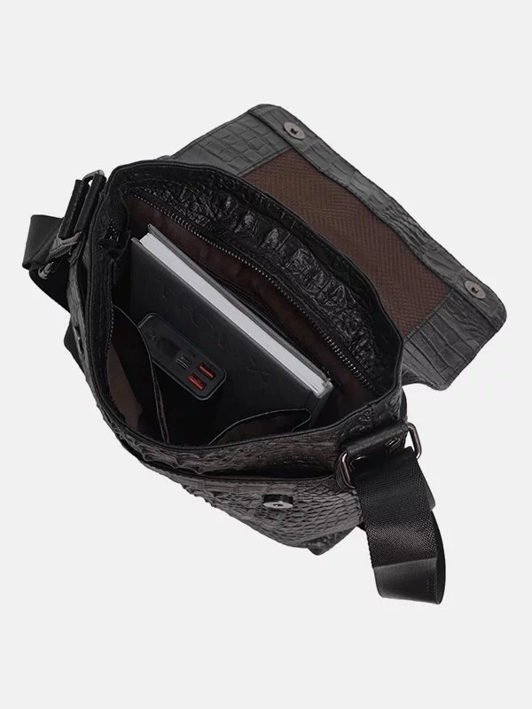 Чоловіча сумка через плече BB-881A – надійний варіант для грошей, будь-яких дрібниць (ключів, павербанків, навушників, смартфонів, зарядних пристроїв тощо). Виготовлена з чорної фактурної натуральної шкіри «під крокодила». Сумка невибаглива за доглядом, має акуратний вигляд, якісний пошив. Месенджер користується підвищеною увагою на українському ринку, особливо у молоді. Незамінний та зручний аксесуар для щоденного використання. Країна виробник – Китай.