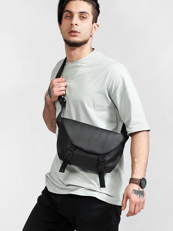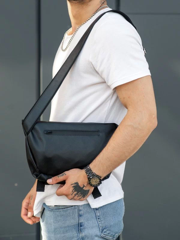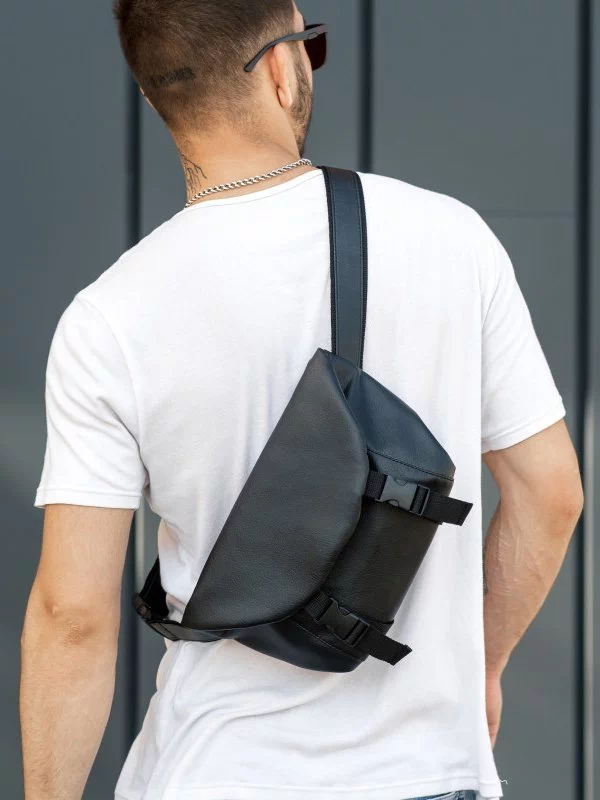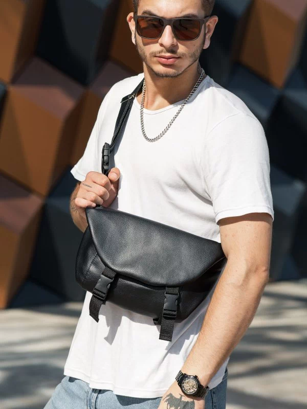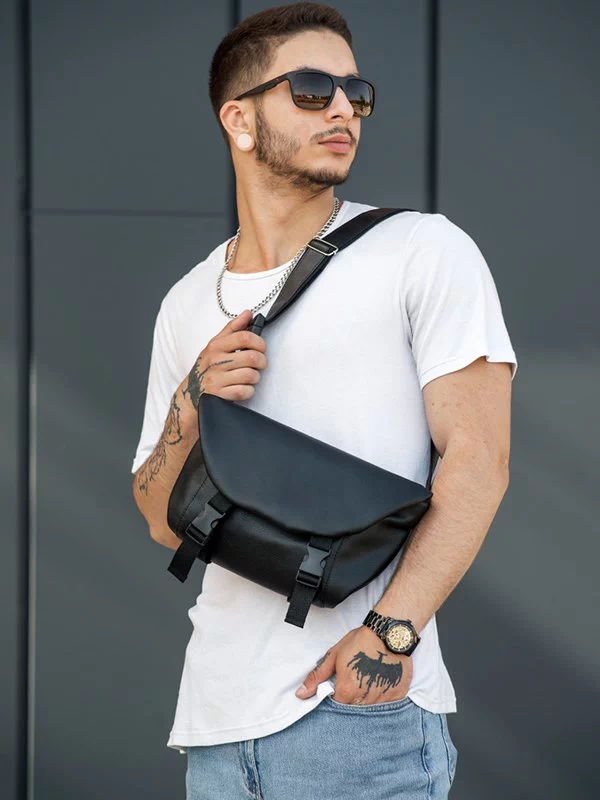 Цікава чоловіча сумка на плече у чорному виконанні на будь-які випадки життя.