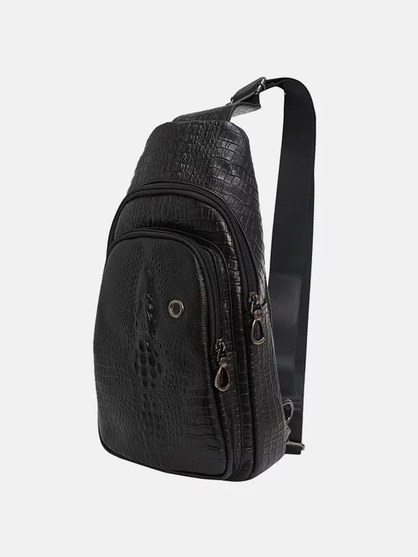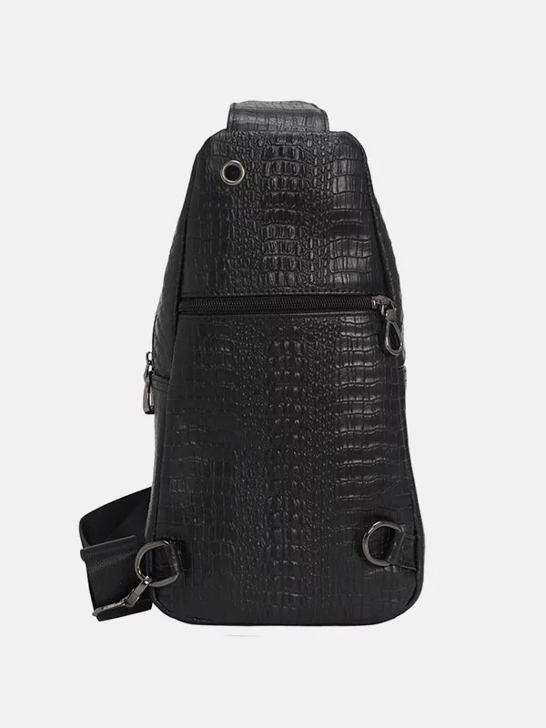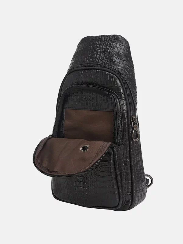 Малий чоловічий рюкзак BB-075 – оптимальне рішення для речей, будь-яких дрібниць (ключів, павербанків, навушників, смартфонів, зарядних пристроїв тощо). Пошитий з чорної фактурної натуральної шкіри «під крокодила». Невибагливий за доглядом, має акуратний вигляд, якісний пошив. Користується значною популярністю на українському ринку. Країна виробник бренду – Китай.