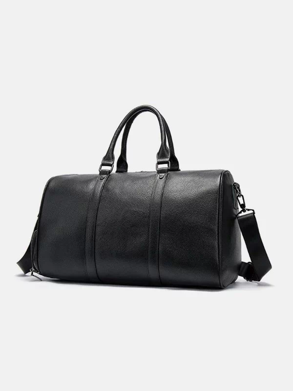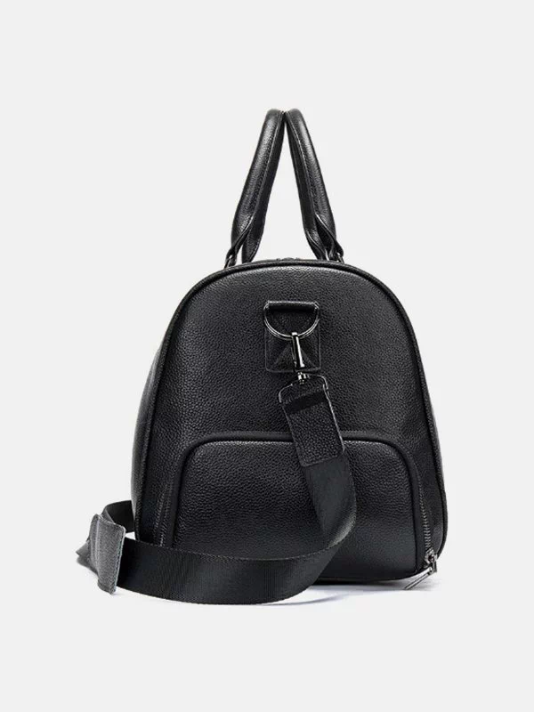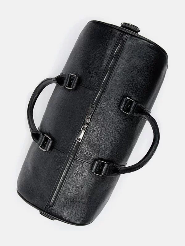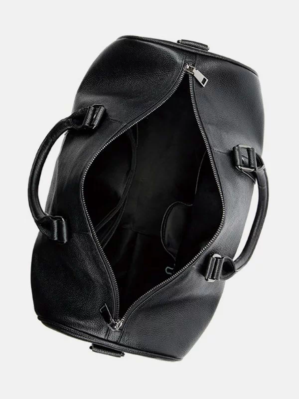 Дорожня сумка чорного кольору з зернистої натуральної шкіри