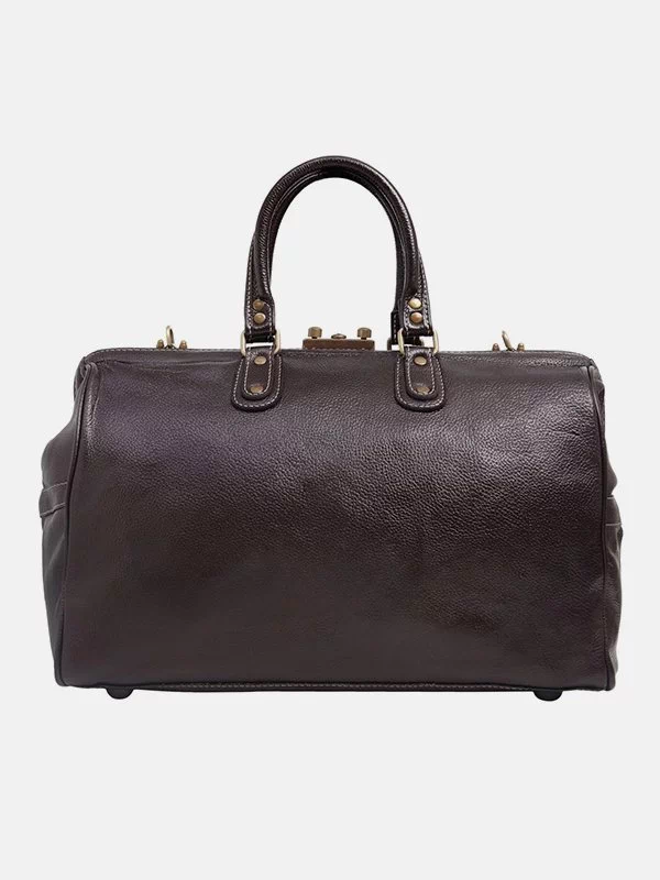 Коричнева дорожня сумка з фактурної натуральної шкіри