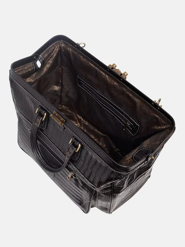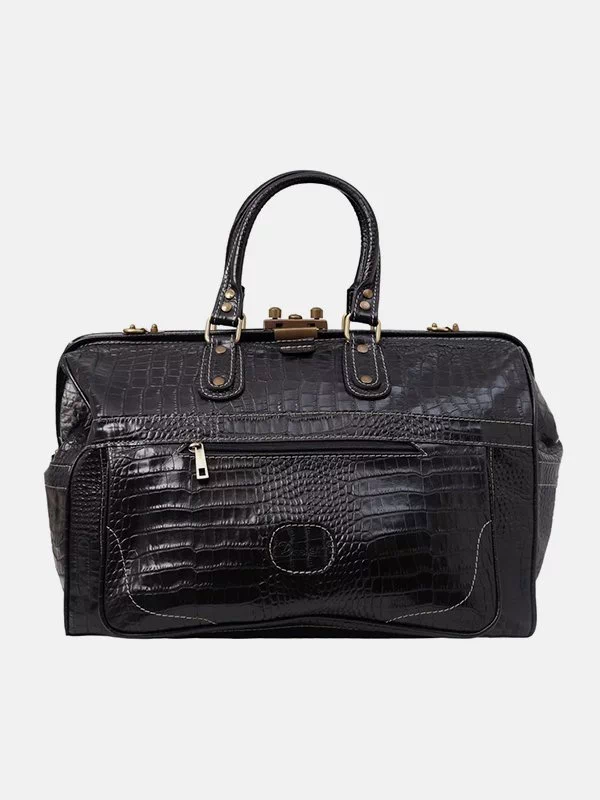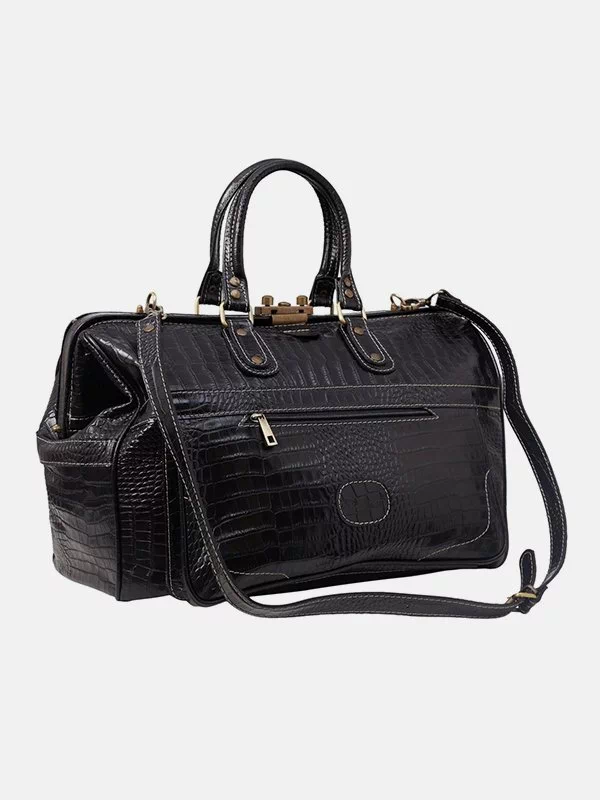 Дорожня сумка D-714/111 – вдалий вибір для використання у відрядженнях, подорожах, в якості ручної поклажі тощо. Виготовлена з фактурної натуральної шкіри чорного кольору з імітацією шкіри крокодила. Сумка невибаглива за доглядом, зносостійка, багатофункціональна, має якісний пошив. Країна виробник – Туреччина.